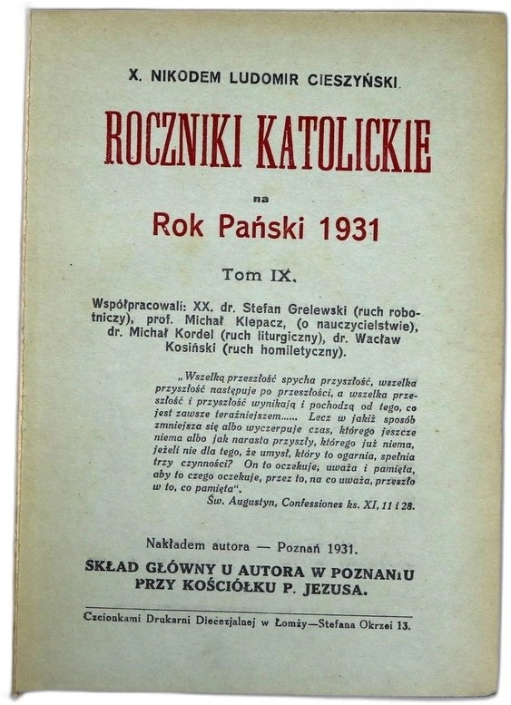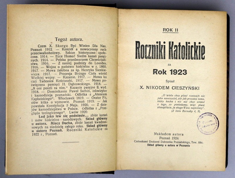 Nikoden Ludomir Cieszyński -Roczniki Katolickie 1923 i 1931
