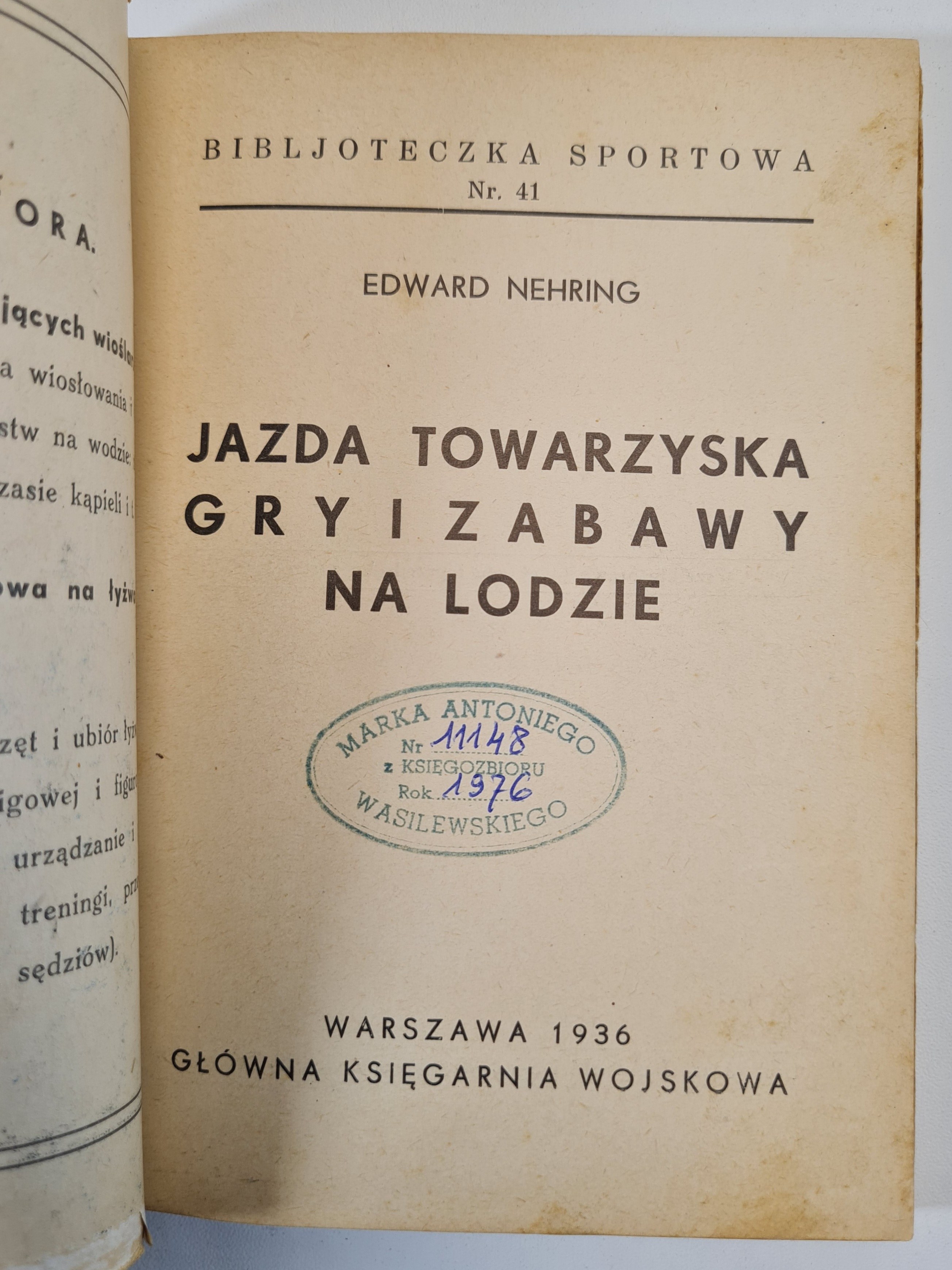 NEHRING Edward - JAZDA TOWARZYSKA GRY I ZABAWY NA LODZIE, BIBLIOTECZKA SPORTOWA nr. 41, wyd.1936