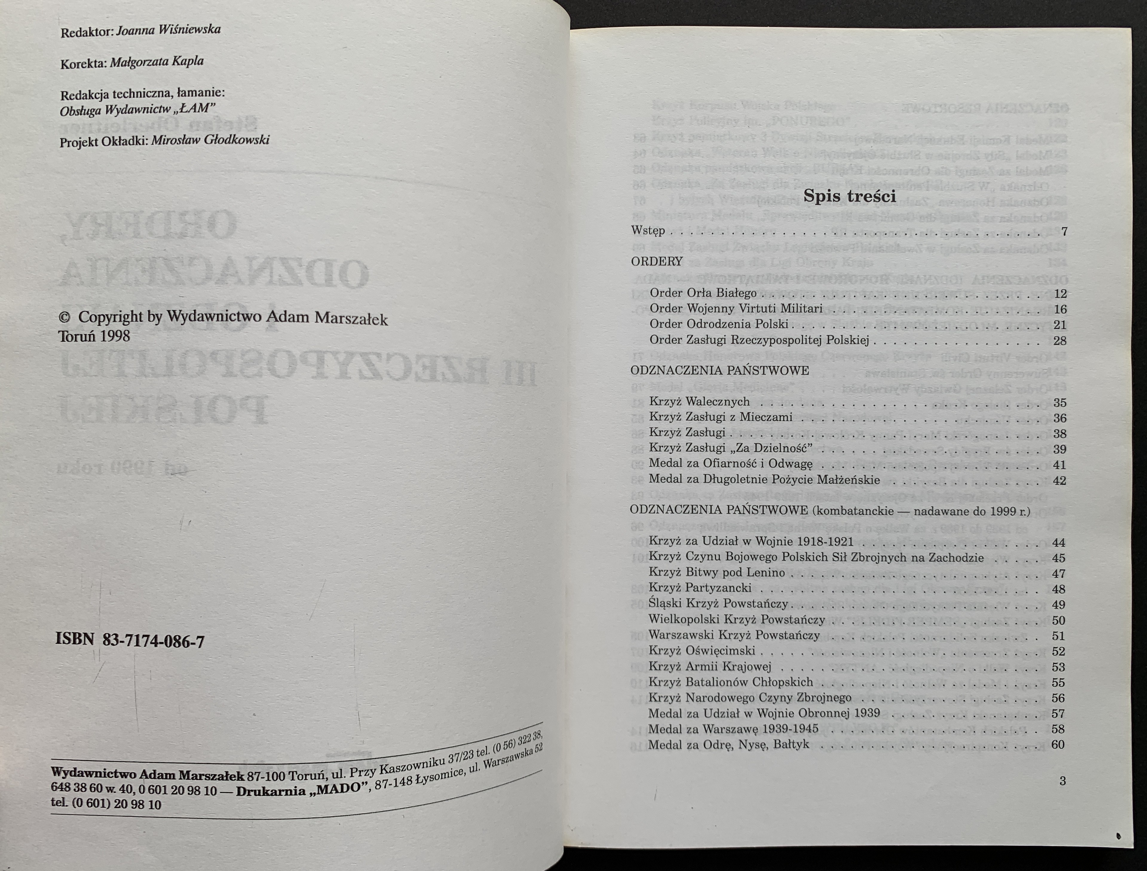 OBERLEITNER Stefan - Ordery, odznaczenia i odznaki III Rzeczypospolitej Polskiej. Toruń 1998. Adam Marszałek.
