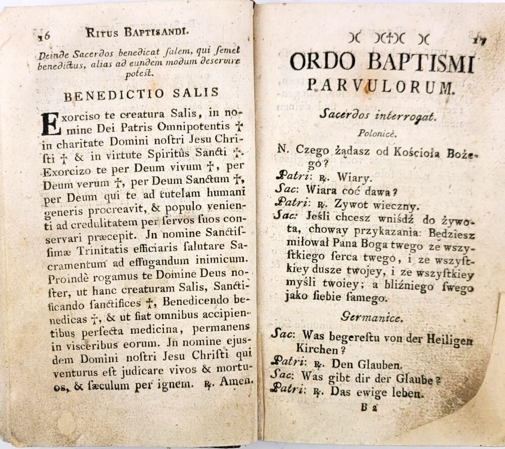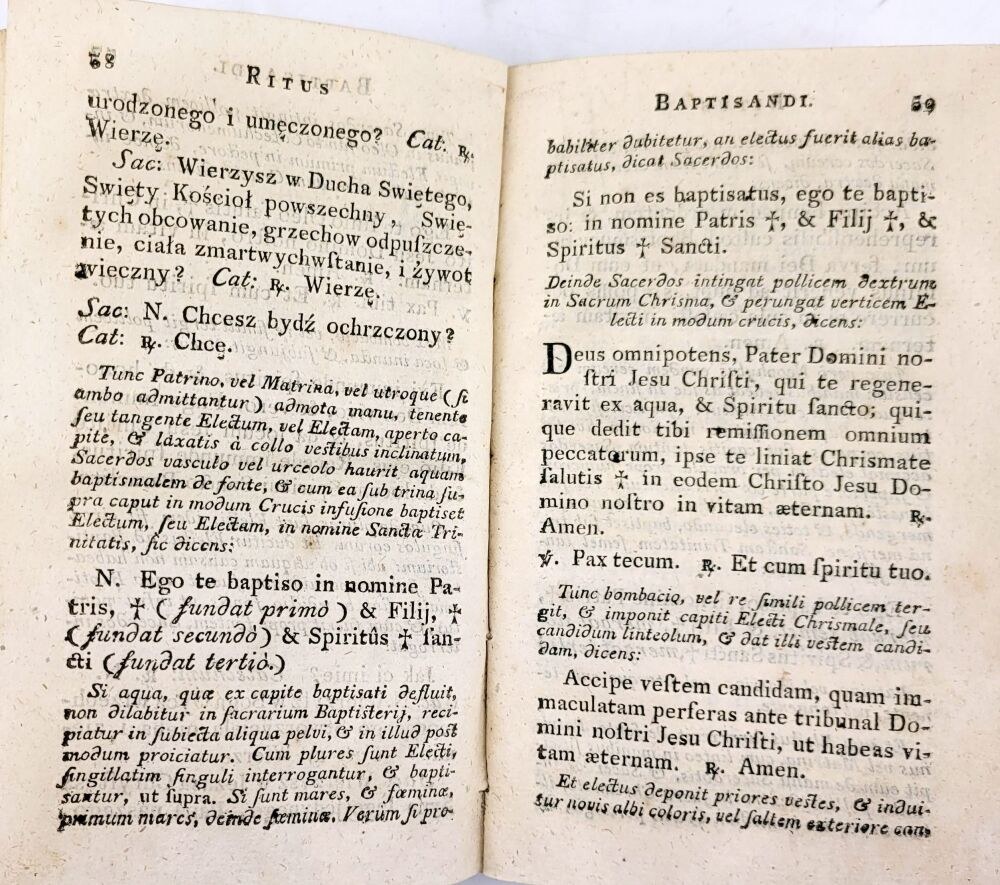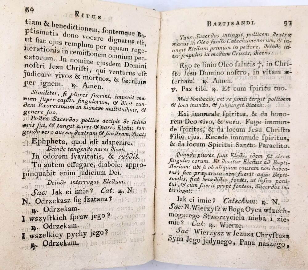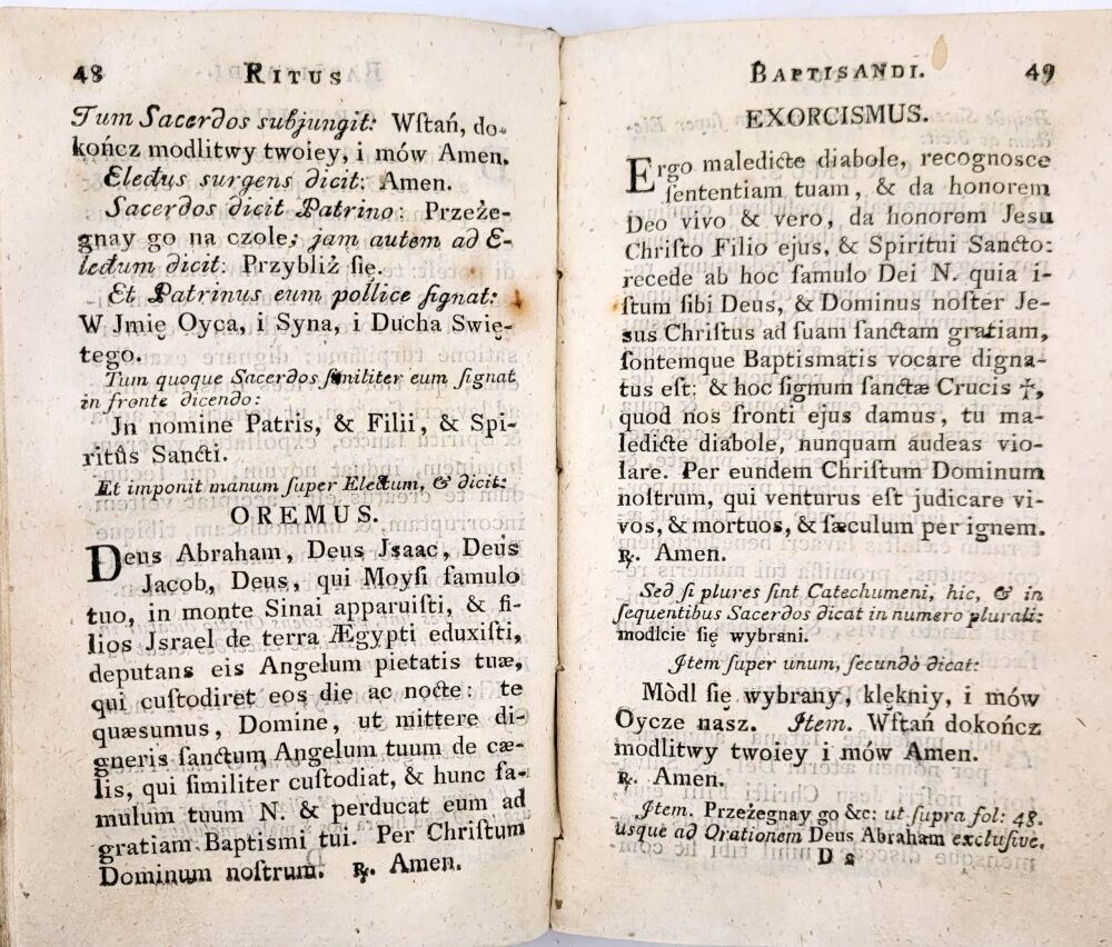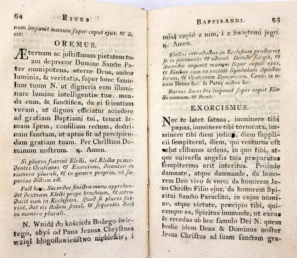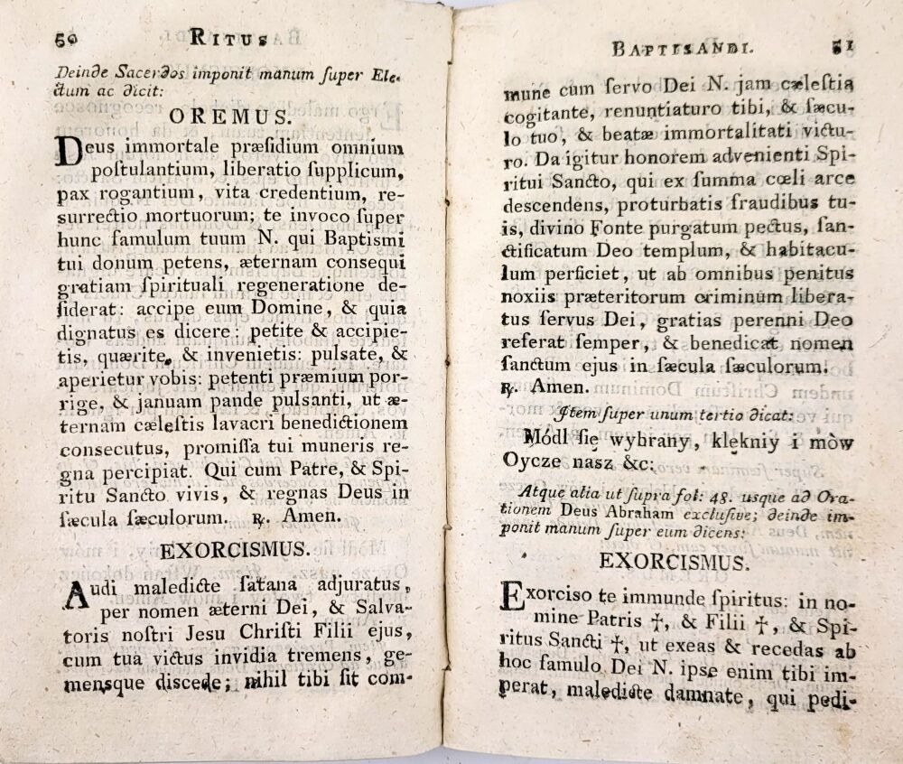Wśród licznych obrzędów znajdują się m.in. inwokacje egzorycyzmów, także w j. polskim.