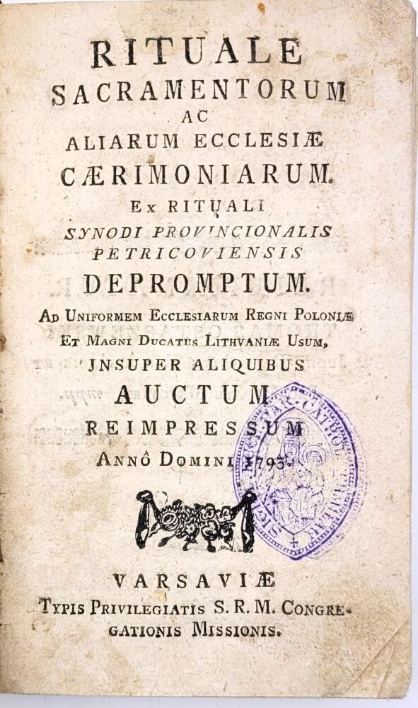 [Obrzędy sakramentów i innych ceremonii kościelnych z Rytuału według dekretu Synodu Prowincjonalnego. w Petrikovie opublikowano bez uprzedzenia do wiadomosci kościołów Królestwa Polskiego i Wielkiego Księstwa Litewskiego].