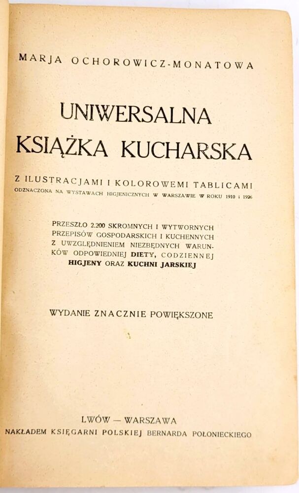 Przeszło 2200 skromnych i wytwornych przepisów gospodarskich i kuchennych z uwzględnieniem niezbędnych warunków odpowiedniej diety, codziennej higjeny oraz kuchni jarskiej