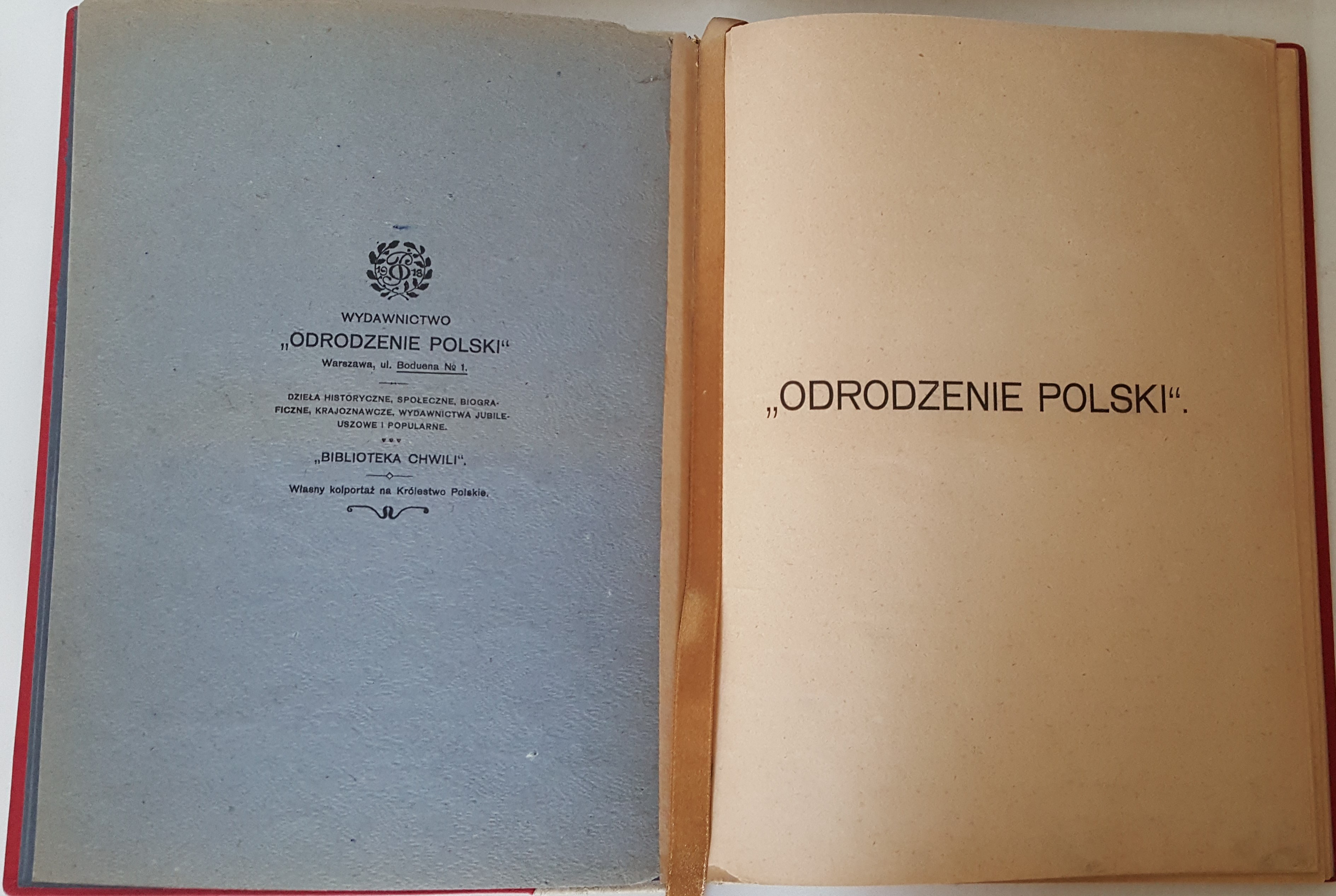 Wyd. "Odrodzenie Polski", Warszawa 1918.ILUSTRACJE W TEKŚCIE. Wym.28,5x21cm; stron 86. Oprawa współczesna półskórek - zdobiona z zachowaniem oryg.okł.brosz. Miejscami nieliczne naddarcia i podklejenia.