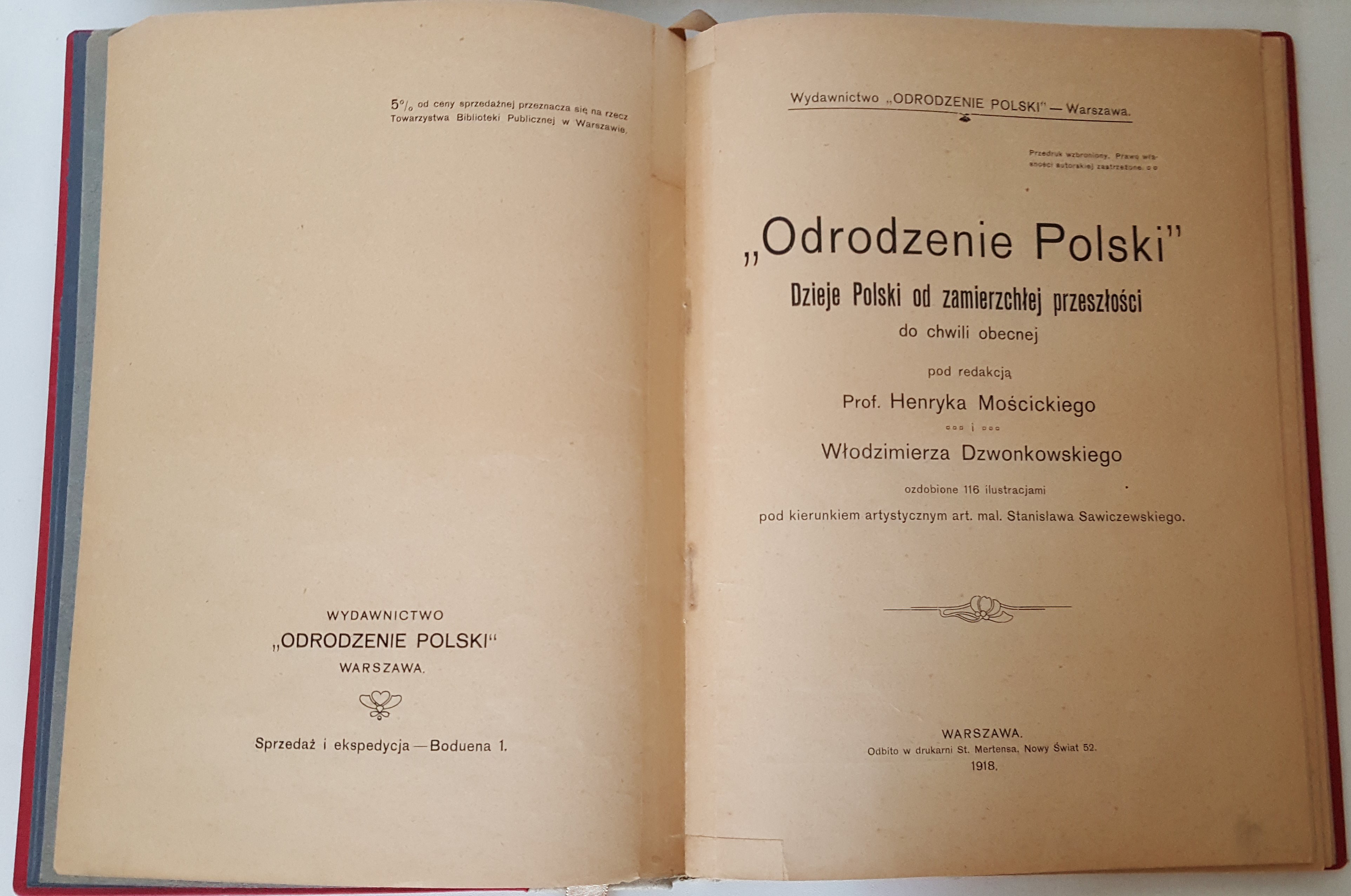 ,,ODRODZENIE POLSKI'' Dzieje Polski od zamierzchłej przeszłości do chwili obecnej pod red. Prof. H. Mościckiego i W. Dzwonkowskiego ozdobione 116 ilustracjami pod kierunkiem artystycznym art. mal. Stanisława Sawiczewskiego