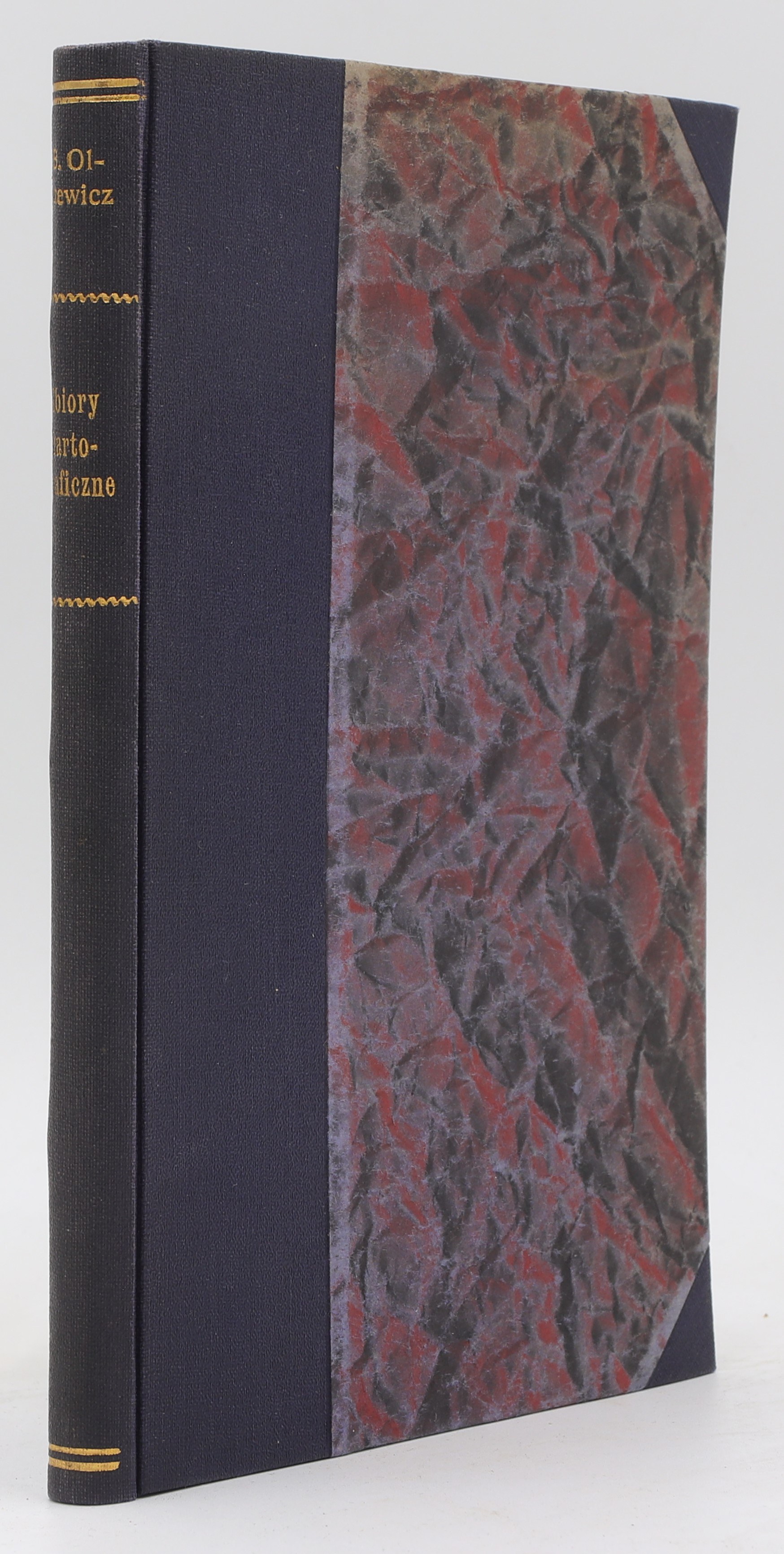 OLSZEWICZ Bolesław. Polskie zbiory kartograficzne, Towarzystwo Bibljofilów Polskich, Warszawa 1926; egzemplarz ręcznie numerowany – 234 z 414; 118 str., st. bdb., oprawa twarda, półpłócienna, na grzbiecie złocony tyt., brzegi kart nakrapiane, format 16d. Rzadkie.