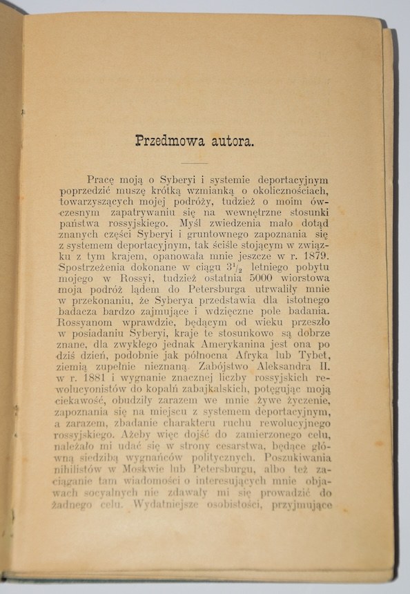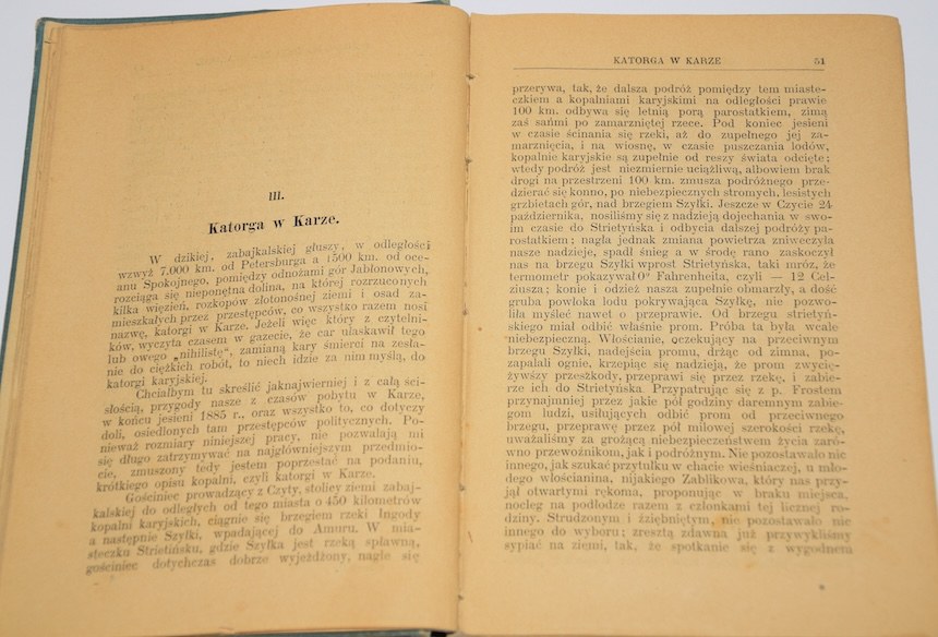 Zawiera m.in.: Granice rossyjskie, Równiny i więzienia w zachodniej Syberyi, Stepy Irtyszskie, Więzienie etapowe w Tomsku, Wygnańcy polityczni i zwykli przestępcy w Tomsku, Wygnańcy w Irkucku. Wolna komenda katorżna w Karze, Kopalnie srebra we Wschodniej Syberyi, Wygnanie i męczeństwo polskich patryotów w Syberyi.
