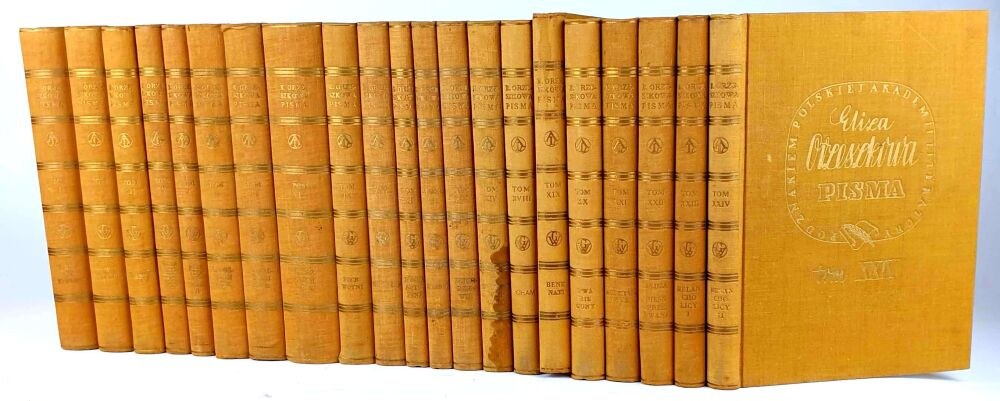 Przedmowy w t. 1: [Z. Nałkowska: Słowo wstępne pt.:] Polska Akademia Literatury; J. Iwaszkiewicz: Eliza Orzeszkowa; Od Redakcji: [Ogólne zasady wydania].