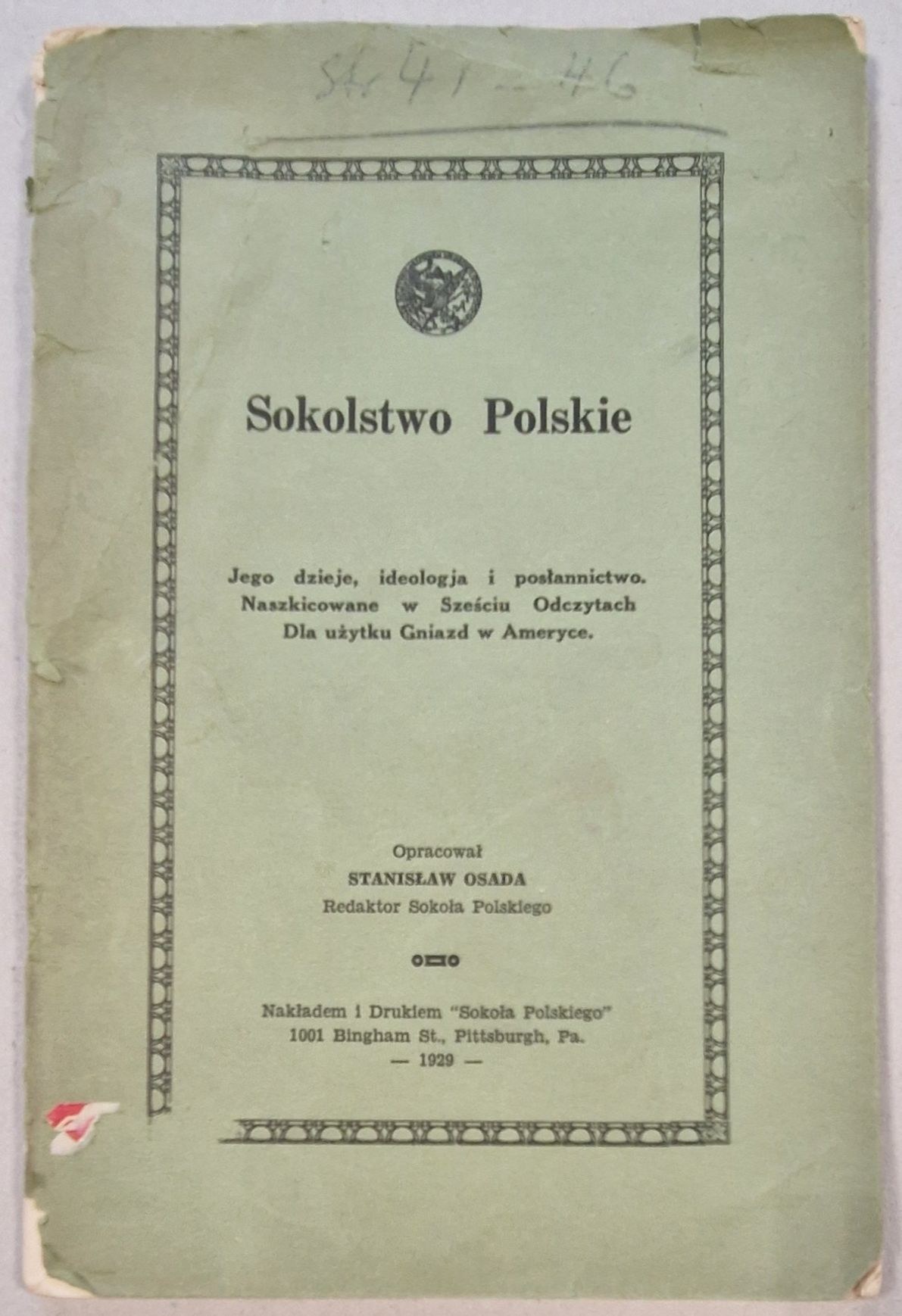 Opracował Stanisław Osada Redaktor Sokoła Polskiego, Sokolstwo Polskie. Jego dzieje, ideologja i posłannictwo. Naszkicowane w Sześciu Odczytach. Dla użytku Gniazd w Ameryce.