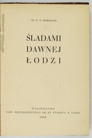 KOSSMANN E. O[skar] - Śladami dawnej Łodzi. Łódź 1934. Tow. Przyrodnicze im. S. Staszica. 8, s. 31, [1]