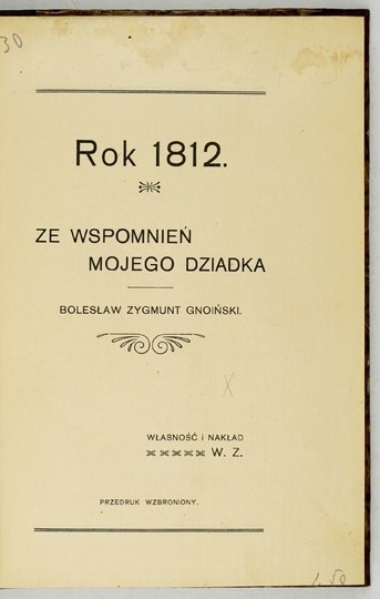 [oraz] GNOIŃSKI Bolesław Zygmunt – Rok 1812. Ze wspomnień mojego dziadka. Kielce 1911. Nakł. W.Z. 8, s. 110