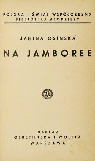 OSIŃSKA Janina - Na jamboree. Warszawa 1934. Nakł. Gebethnera i Wolffa. 16d, s. 71, [1], tabl. 2. opr. późn. ppł. z zach. okł. brosz. Polska i Świat Współczesny, Bibljot. Młodzieży, [nr] 28; z cyklu: W jednym szeregu.