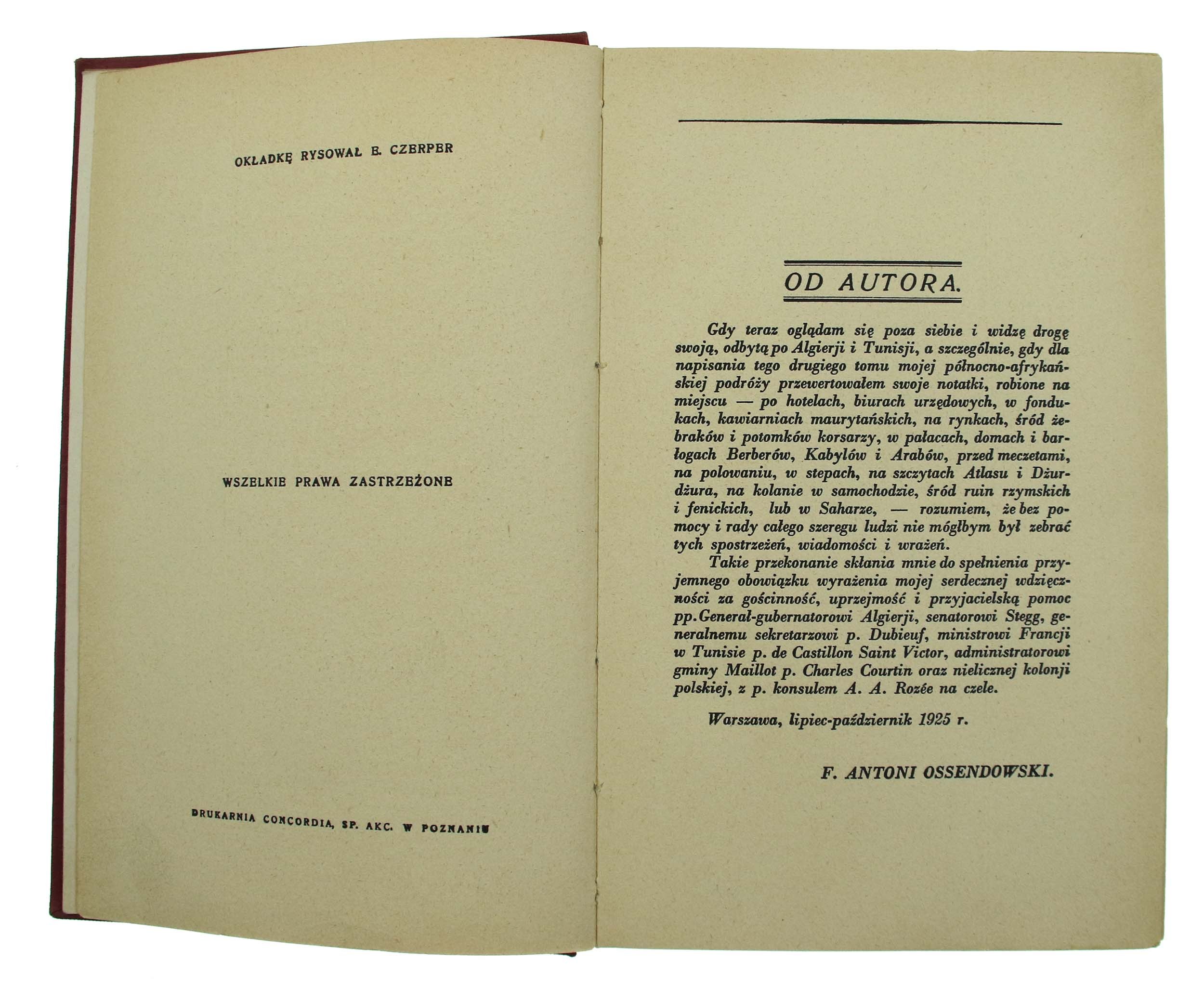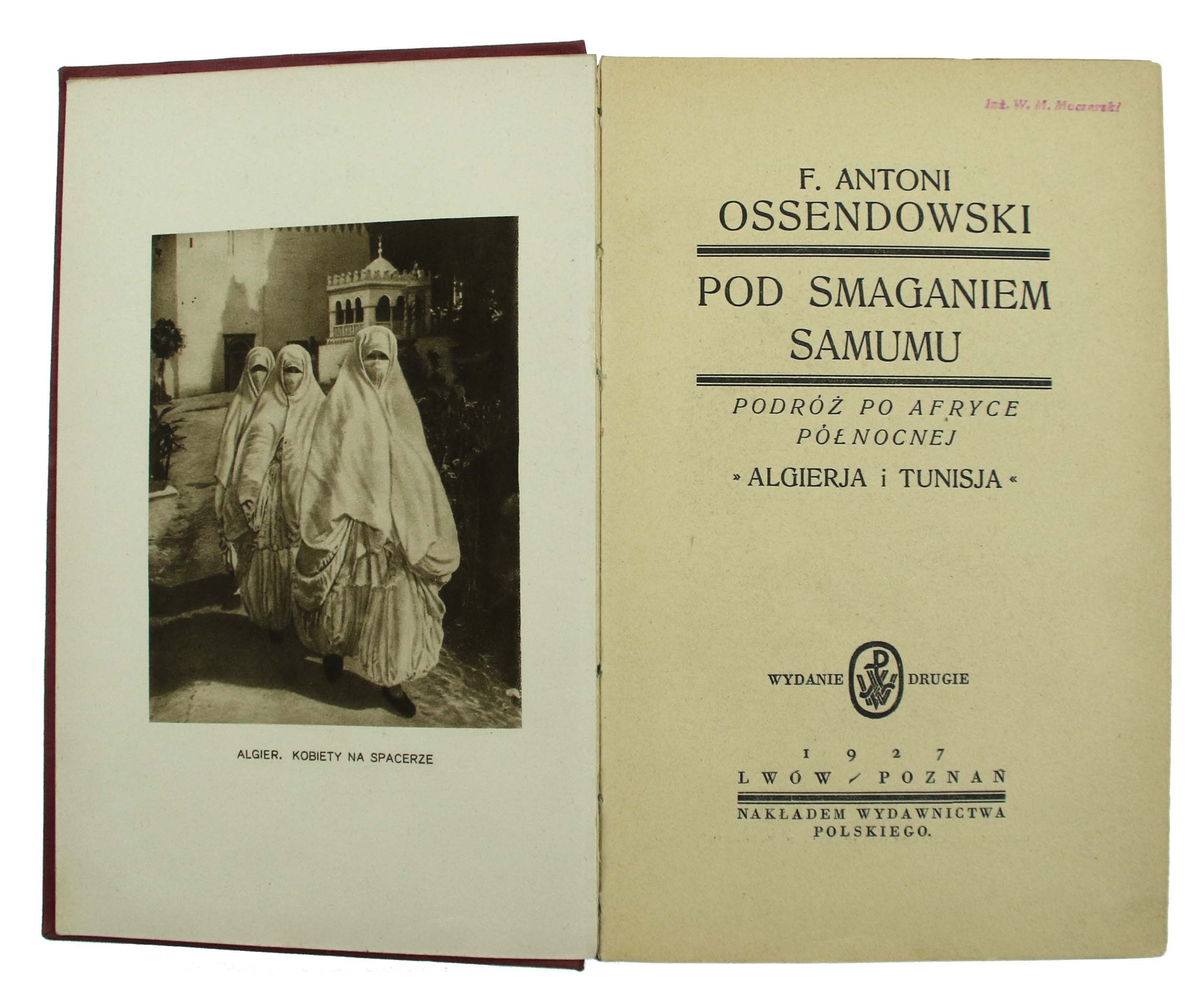 Ossendowski, F. A.- Pod Smaganiem Samumu. Podróż po Afryce Północnej. Algierja i Tunisja. Lwów/Poznań 1927. Wydawnictwo Polskie. 350 str. Wym: 24 x 15 cm. Okładka twarda. Książka kompletna, w dobrym stanie. Zawiera reprodukcje fotografii i mapkę.