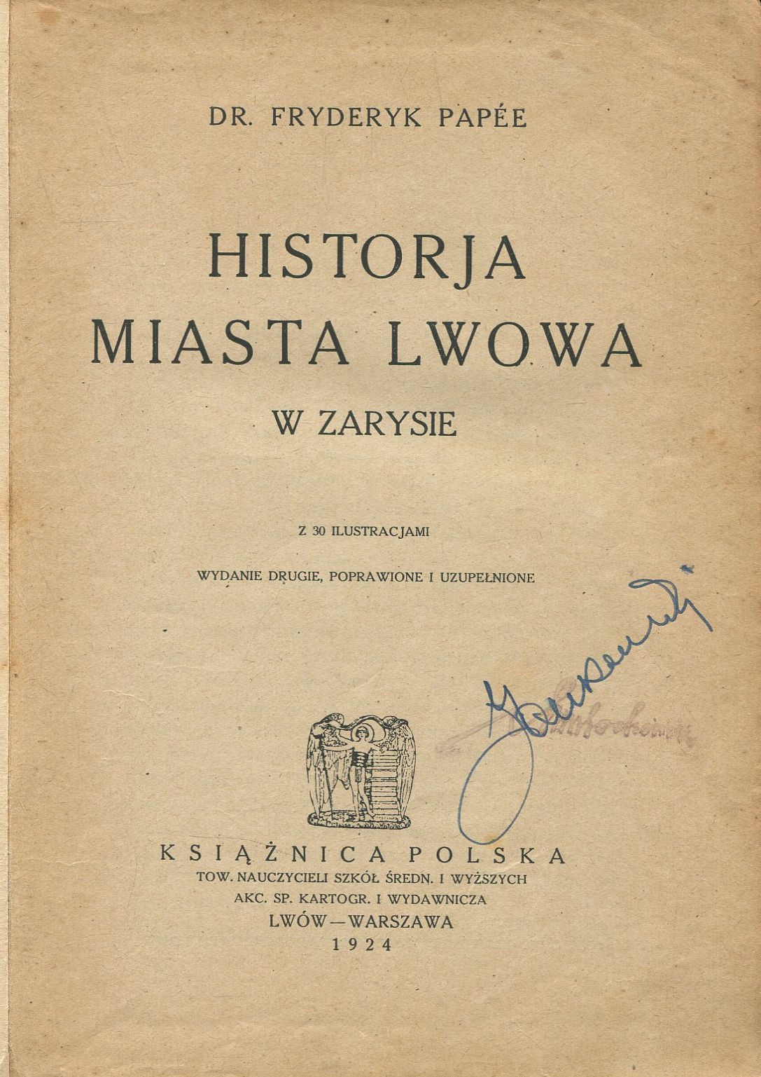Przegląd dziejów Lwowa od wieku XIII do czasów współczesnych autorowi. Wydanie drugie, poprawione i uzupełnione. Okładkę zaprojektowała Anna Harland-Zajączkowska.