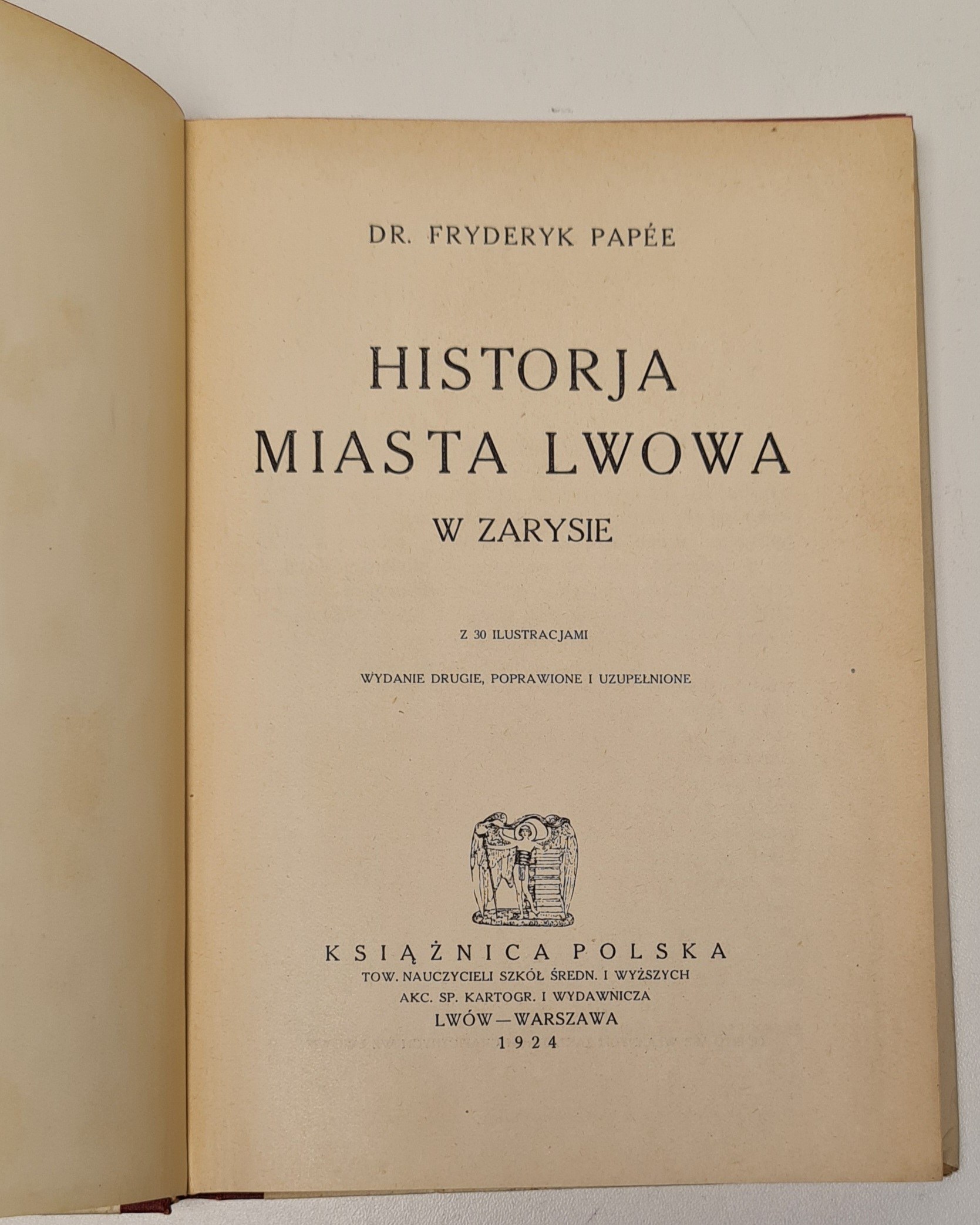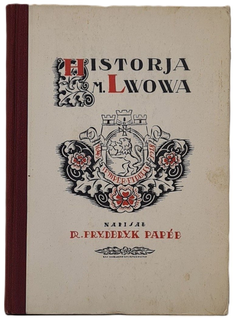 Papee Fryderyk - Historja miasta Lwowa w zarysie. Lwów - Warszawa 1924. Książnica Polska. Wydanie drugie, poprawione i uzupełnione.Wym.14x20,5 cm, str. 286. Okładkę zaprojektowała Anna Harland-Zajączkowska. czarno-białe ilustracje w tekście, oprawa wydawnicza półpłócienna. Stan bardzo dobry