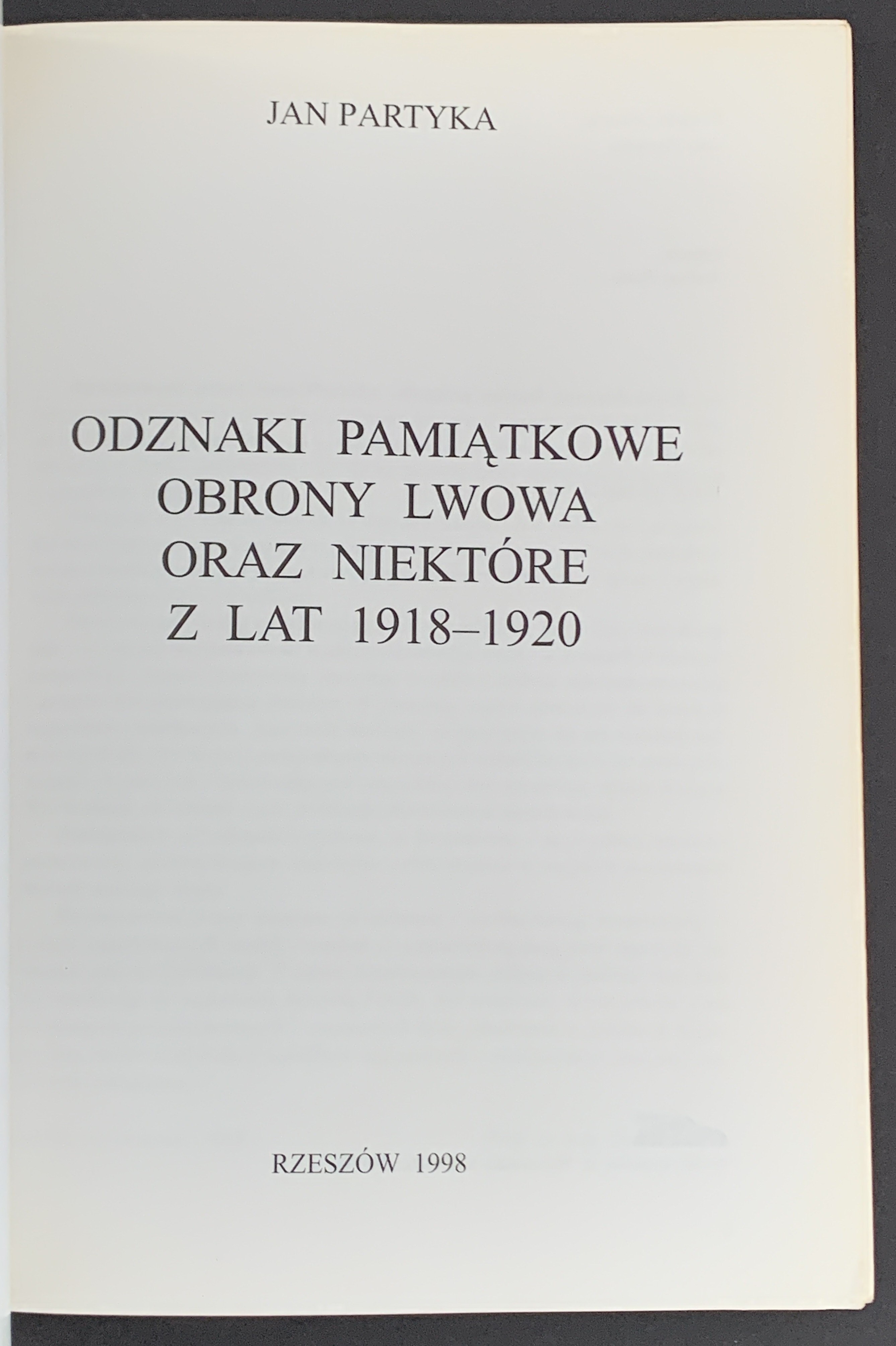 PARTΥΚΑ Jan - ODZNAKI PAMIĄTKOWE OBRONY LWOWA oraz niektóre z lat 1918-1920. Rzeszów 1998.