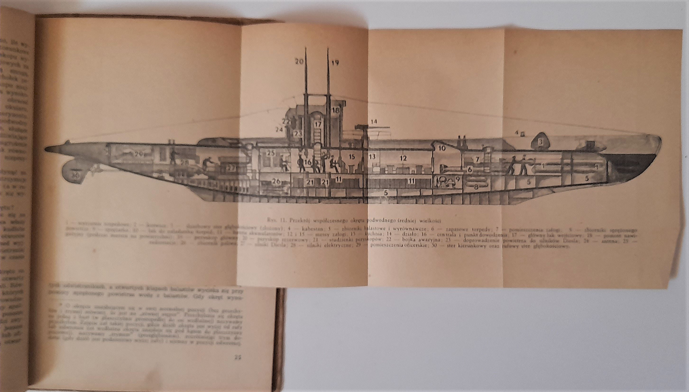 Stron 83,liczne ilustracje i schemat okrętu podwodnego(rozkładany).
