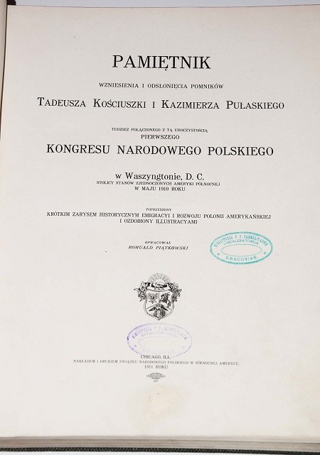 NAKŁADEM I DRUKIEM ZWIĄZKU NARODOWEGO POLSKIEGO W PÓŁNOCNEJ AMERYCE, CHICAGO 1911r., str. 650, ilustr. w tekście, 21 k. tabl., 1 mapa; 32x26,5cm.