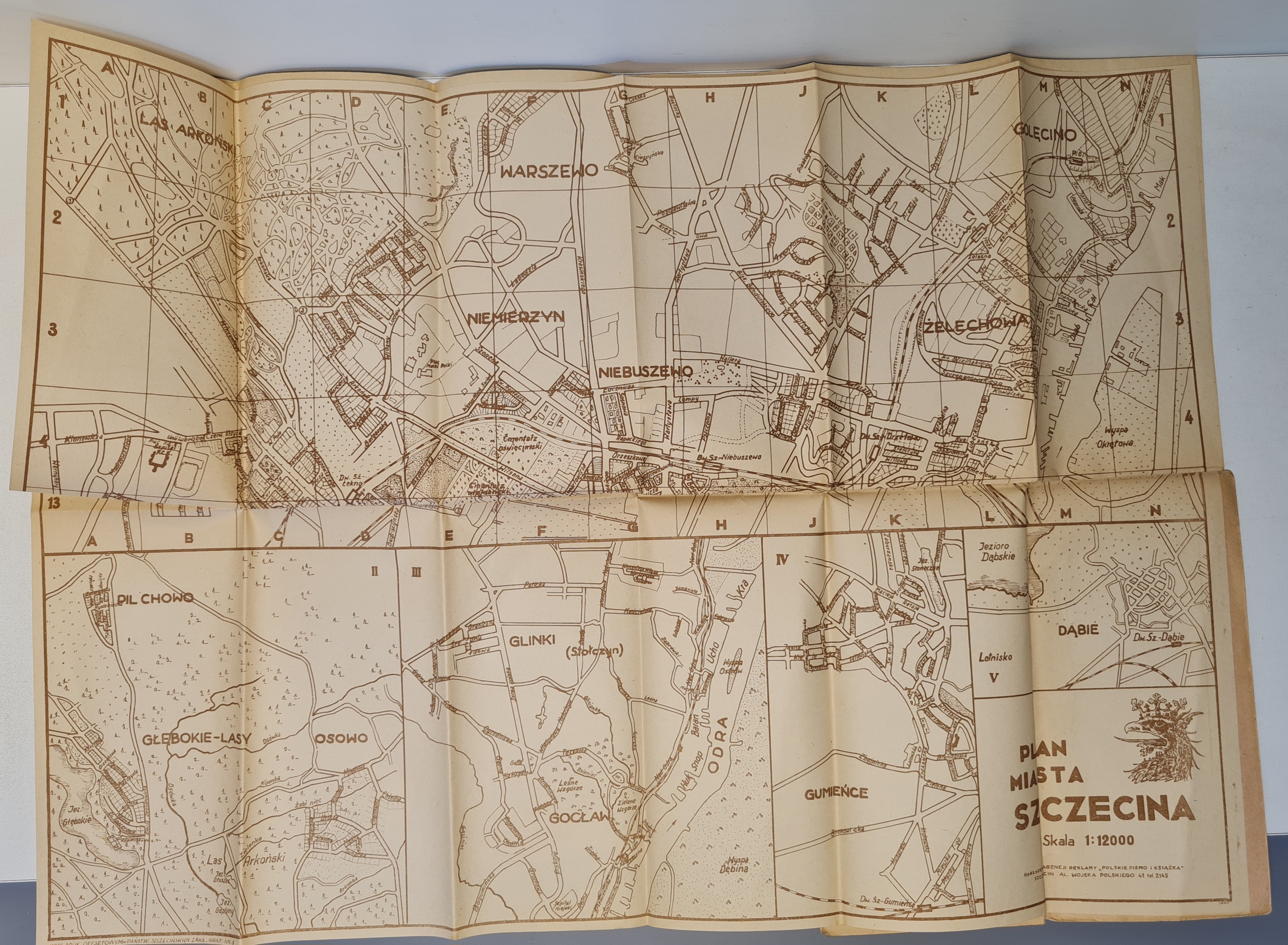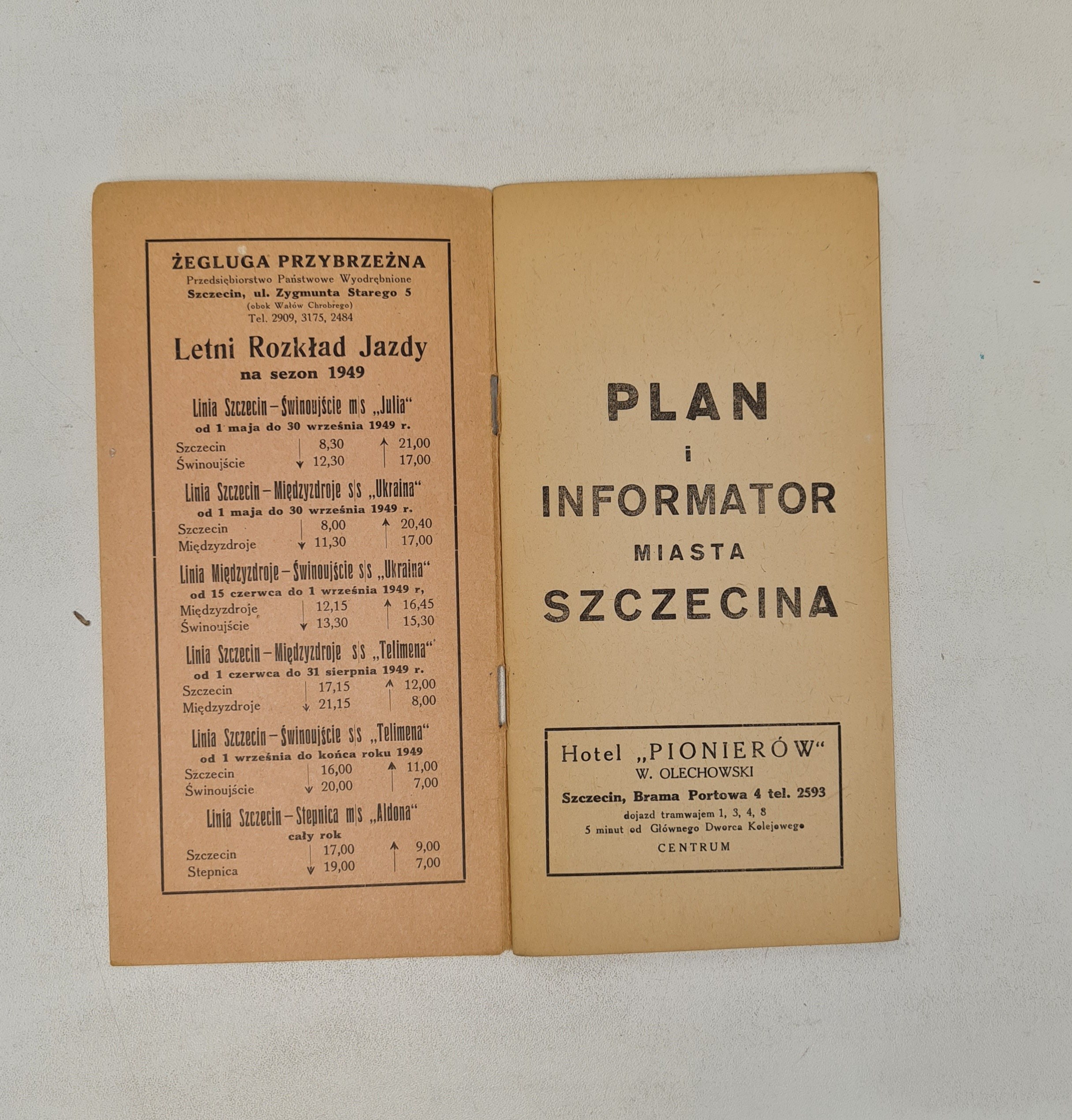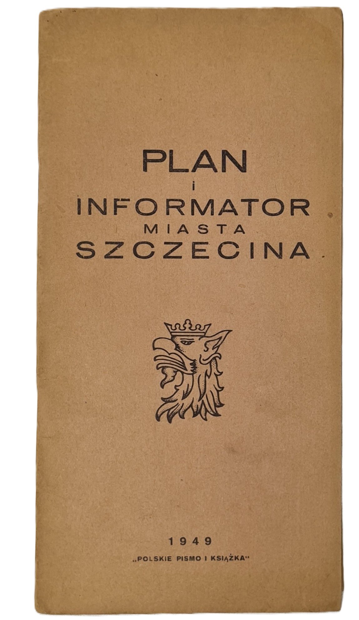 Polskie Pismo i Książka, Szczecin 1949. Wym.21x10,5cm, stron 24+rozkładany plan. Broszura.