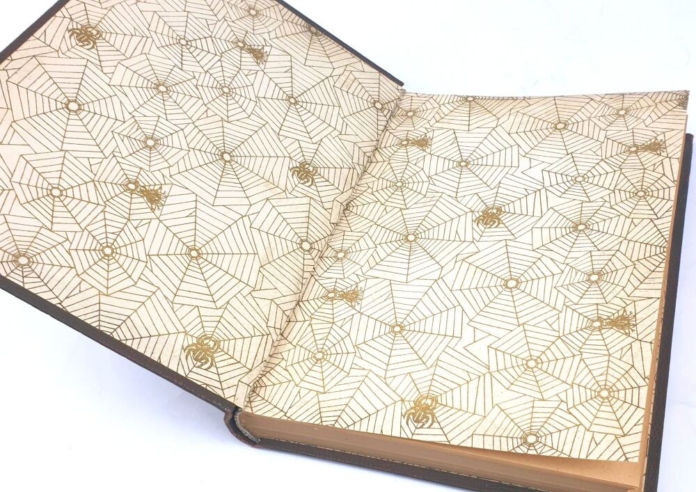 TWARDA OPRAWA INTROLIGATORSKA SKÓRA GADZIA Z EPOKI, SKÓRZANY SZYLDZIK, OZDOBNE WYKLEJKI, GÓRNE OBCIĘCIA KART BARWIONE