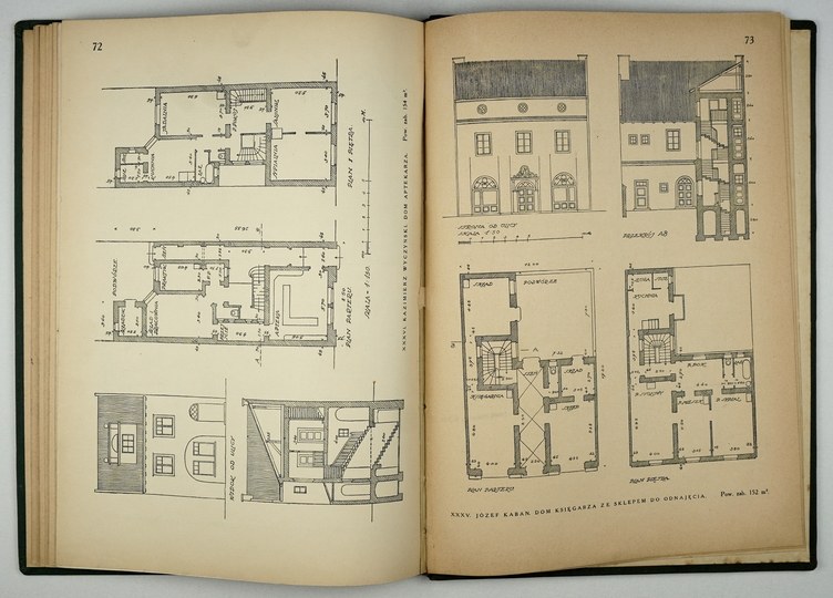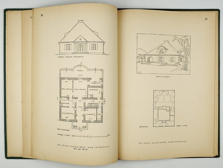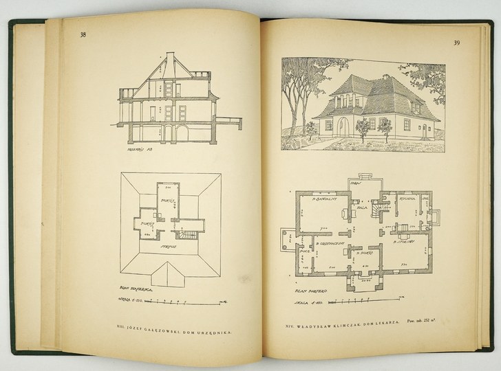Niewielkie zarysowania okł., część kart podklejonych w grzbiecie, stan dobry. Podpis własn. Zaw. m.in. przykładowe projekty łaźni ludowej, gospody, hotelu z zajazdem, szkoły ludowej jedno- i wieloklasowej, szpitala, urzędu gminnego, ochronki.