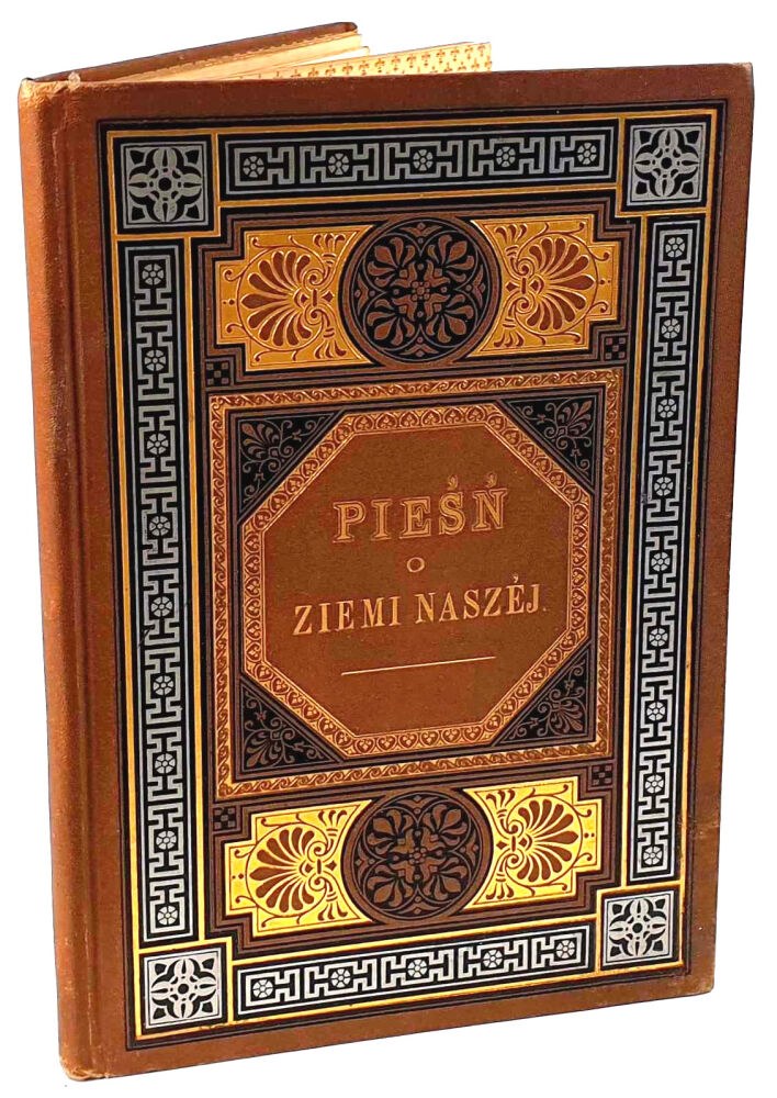 TWARDA OPRAWA WYDAWNICZA. PRZEDNIE LICO BOGATO ZDOBIONE BARWIONYMI TŁOCZENIAMI ORAZ ZŁOCENIAMI, LUSTRO OKŁADKI ZDOBIONE ŚLEPYMI TŁOCZENIAMI. OBCIĘCIA KART ZŁOCONE Z TRZECH STRON. OZDOBNA WYKLEJKA.
