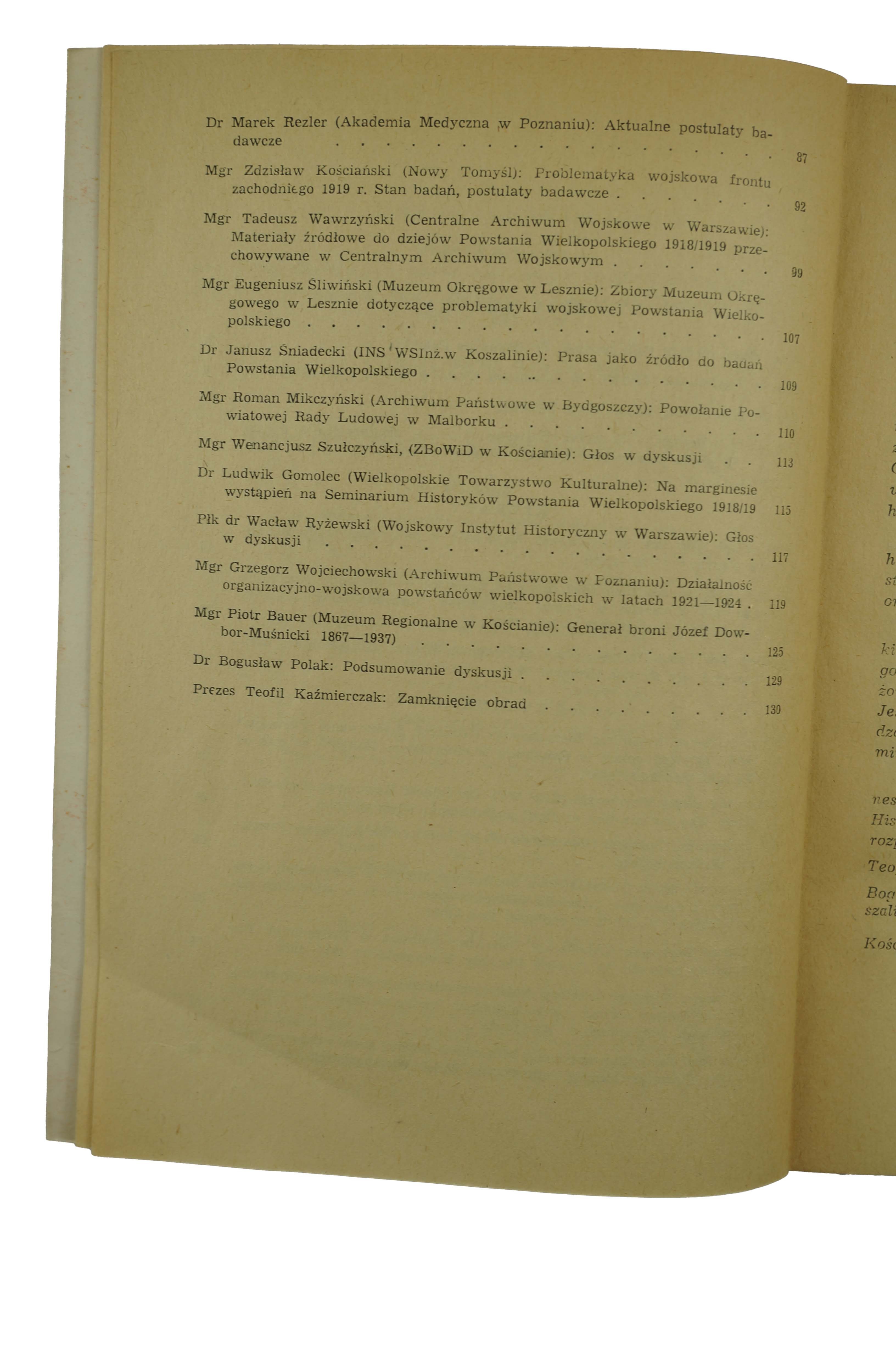 Czyn zbrojny Powstania Wielkopolskiego 1918-1919. Materiały z V Ogólnopolskiego seminarium historyków Powstania Wielkopolskiego 1918-1919 Kościan 3 kwietnia 1984r., - redakcja naukowa: Bogusław Polak, Koszalin 1984, f. 17,5x24cm, s. 130, [14]