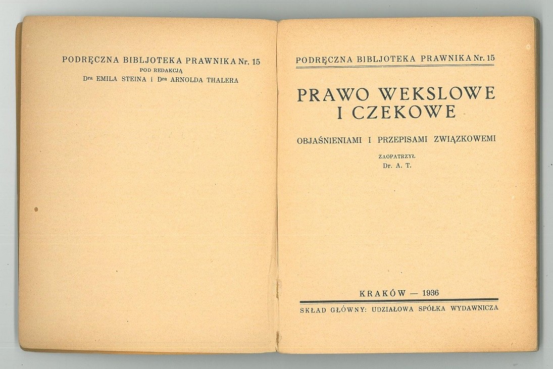Objaśnieniami i przepisami związkowemi zaopatrzył Dr. A. T. Kraków 1936. Udziałowa Spółka Wydawnicza. 16, s. VI, 164, okł. brosz. wyd. Podręczna Bibl. Prawnika Nr.15