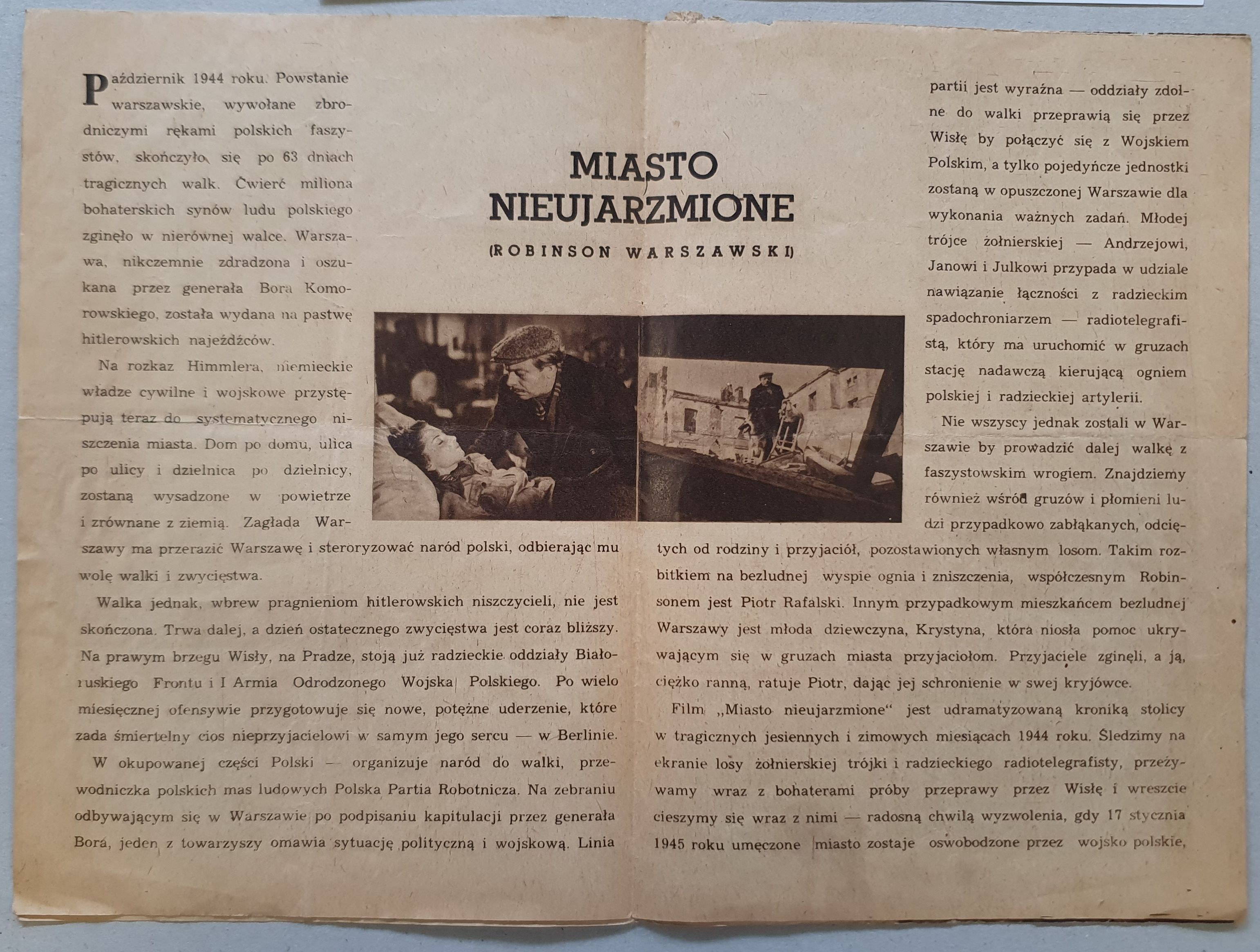 Dramat filmowy ukazujący sytuację w mieście po Powstaniu Warszawskim, na podstawie wojennych wspomnień Władysława Szpilmana. Film kręcono w latach 1948-49, kiedy to Warszawa była ciągle w ruinie, dokumentuje zniszczenia dokonane przez okupantów. Część zdjęć wykonano w Łodzi i Wrocławiu.