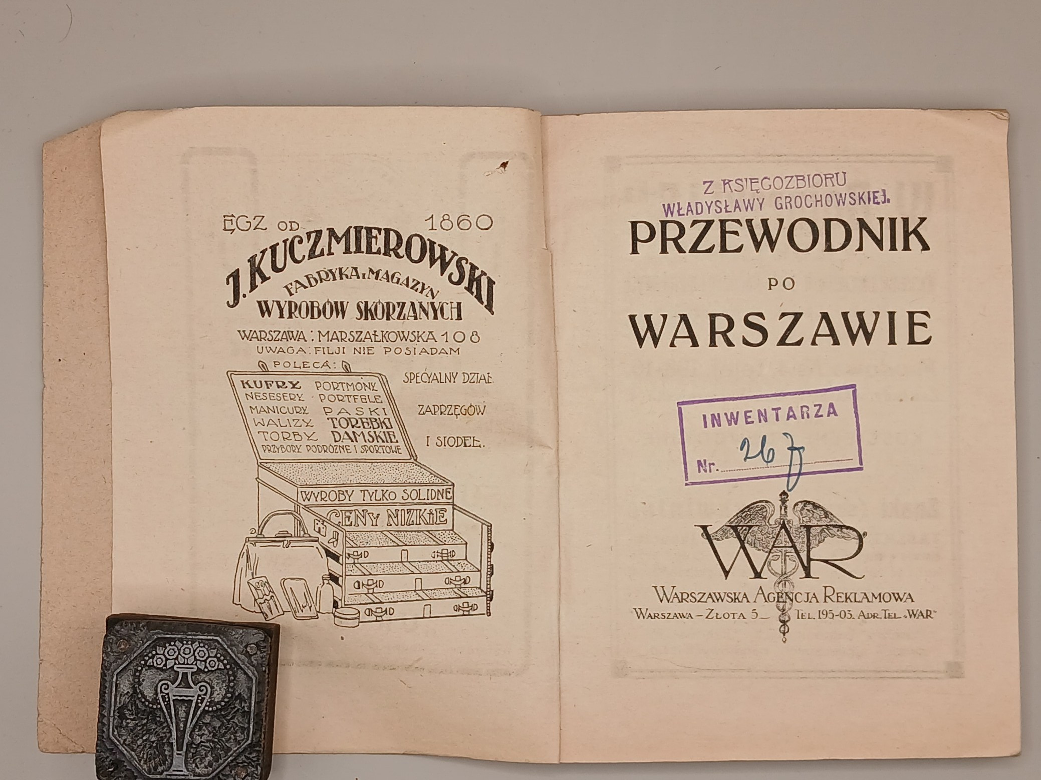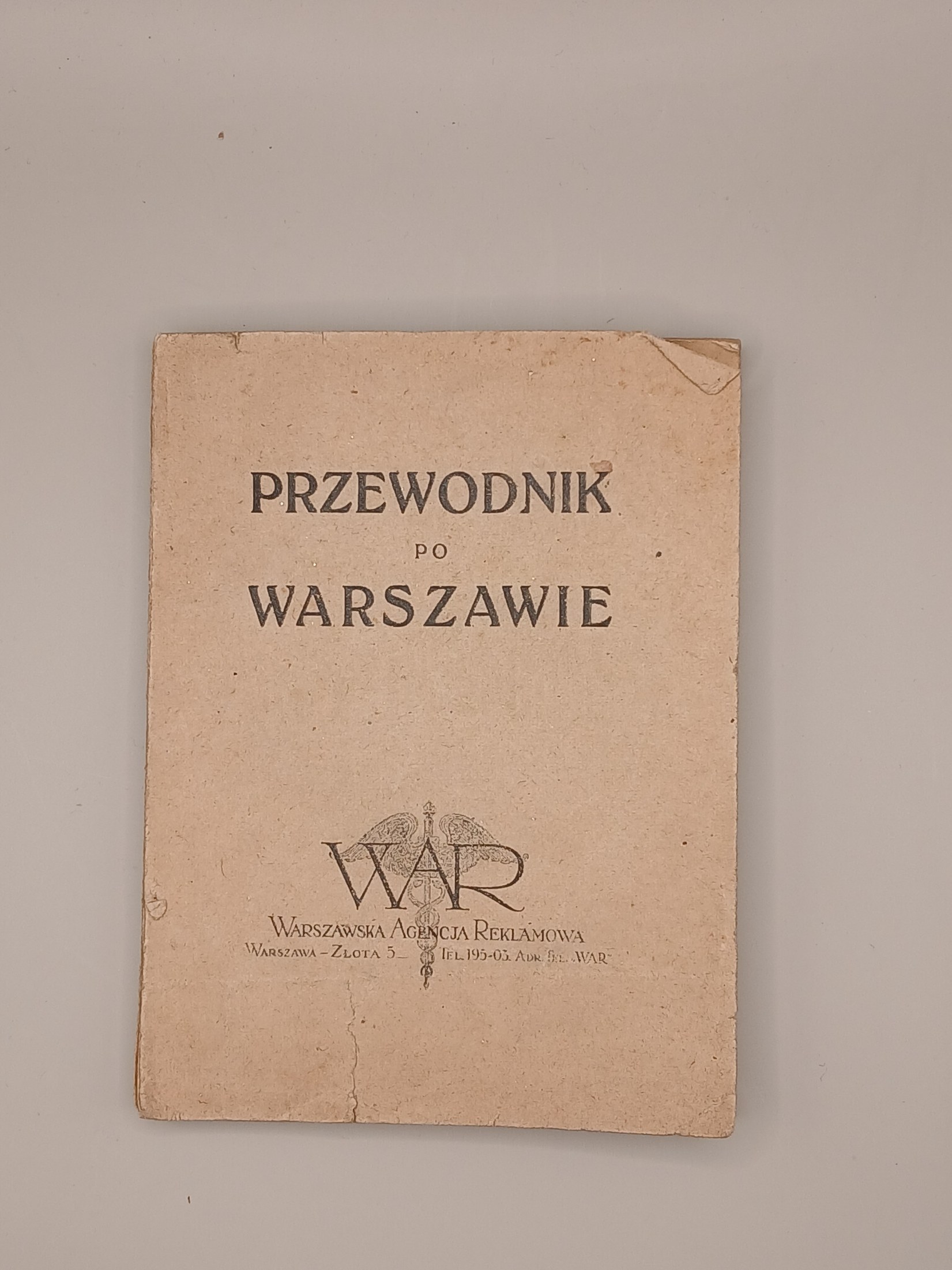 PRZEWODNIK PO WARSZAWIE. WAR- WARSZAWSKA AGENCJA REKLAMOWA [ok. 1930 roku]. 15x11 cm, s. 168 plus 12 str. reklam, naderwane okładki , jedna składka z reklamami luzem.
