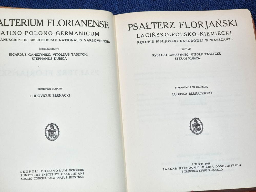 PSAŁTERZ Florjański łacińsko-polsko-niemiecki. Rękopis Bibljoteki Narodowej w Warszawie wydali Ryszard Ganszyniec, Witold Taszycki, Stefan Kubica. Lwów: Zakład Narodowy im.Ossolińskich, 1939. [reprint z 2002]
