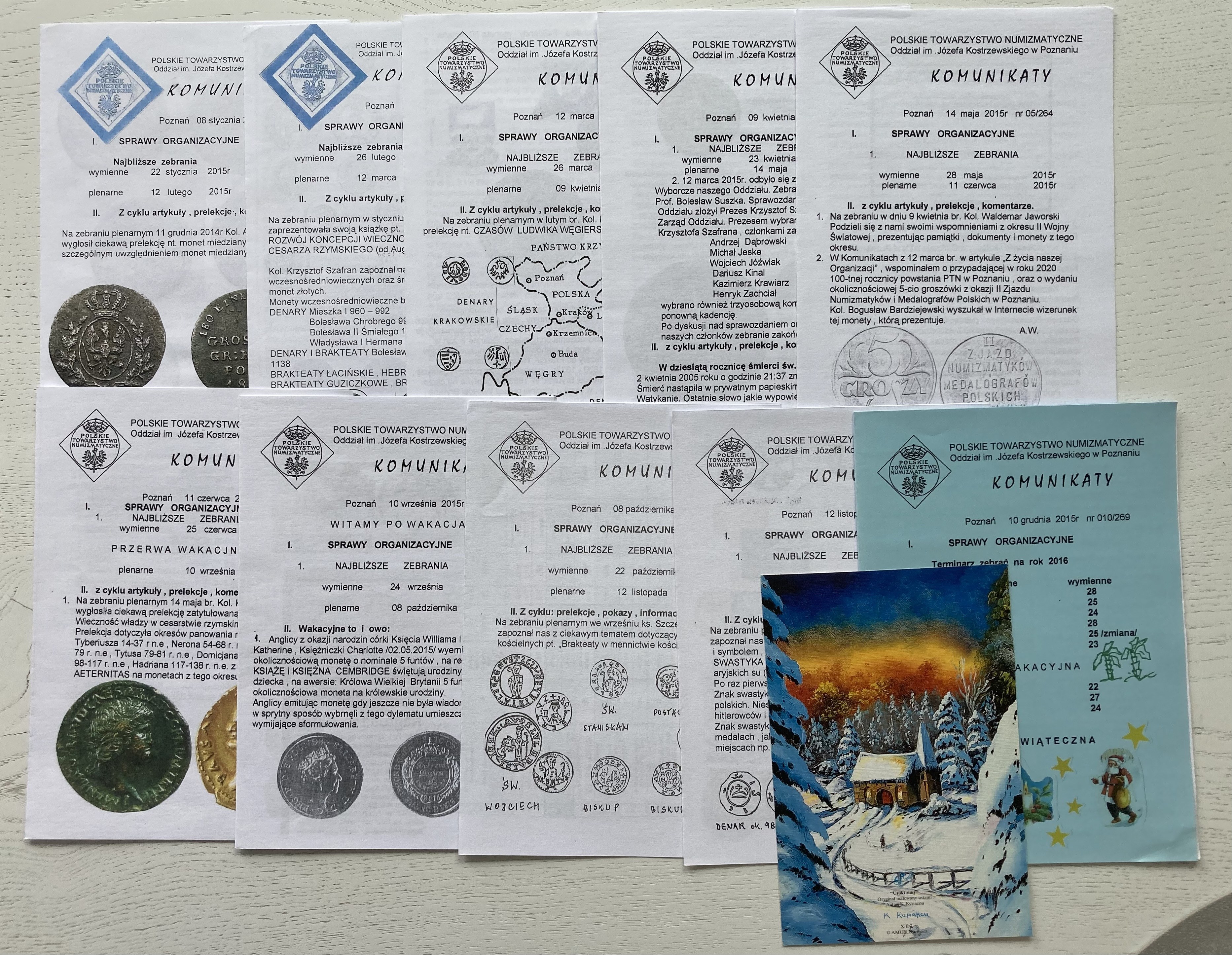 Kompletny rocznik, 10 numerów ( z życzeniami świątecznymi). Komunikaty nie ukazują się w lipcu i sierpni. Kilkustronicowe broszury, zdjęcia, rysunki.