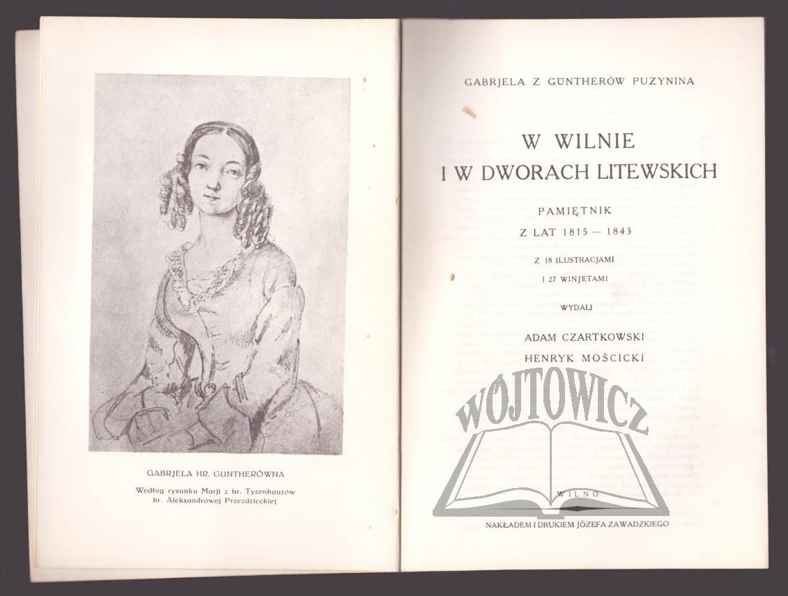 Pamiętnik z lat 1815 - 1843. Z 18 ilustracjami i 27 winjetami. Wydali adam Czartkowski, Henryk Mościcki. Wilno (b. r.) Nakł. i drukiem Józefa Zawadzkiego. 8, s. [4], XVIII, 389, [1], ilustr. na osobn. tabl., winiety, okł. brosz. oryg. Reprint. Kraków 1990. KAW.