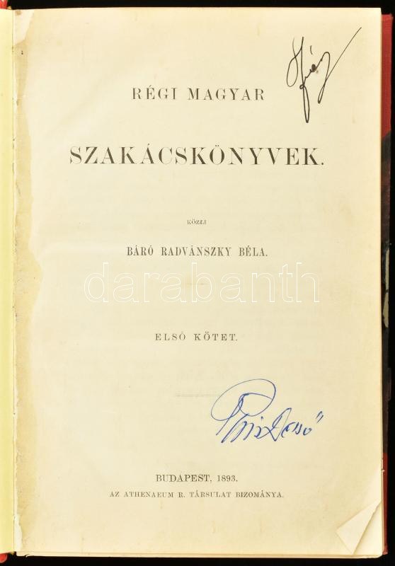 Radvánszky Béla: Régi magyar szakácskönyvek. I. kötet. (Unicus) Bp., 1893., Athenaeum. 413p. Későbbi félvászon kötésben címlapon névbeírással, egy lapon folttal. Jó állapotban