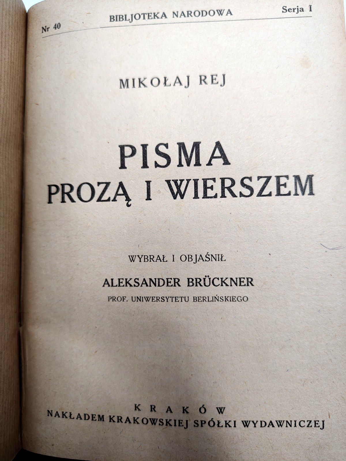 Rej Mikołaj - Pisma prozą i wiersze + Krasicki Mikołaja Doświadczyńskiego przypadki- Kraków 1925