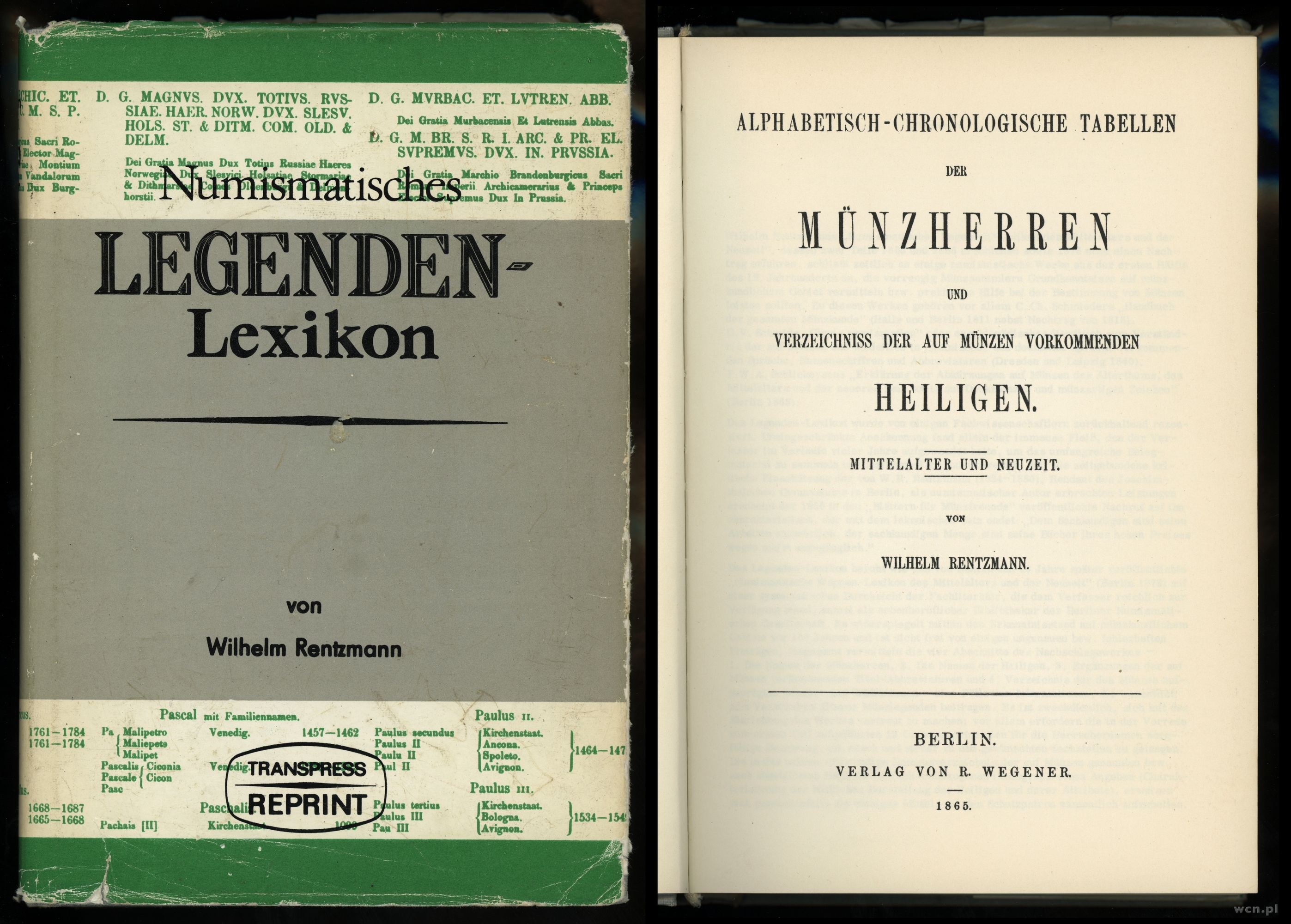 Rentzmann Wilhelm - Numismatisches Legenden-Lexikon, Berlin 1865 (REPRINT 1977)