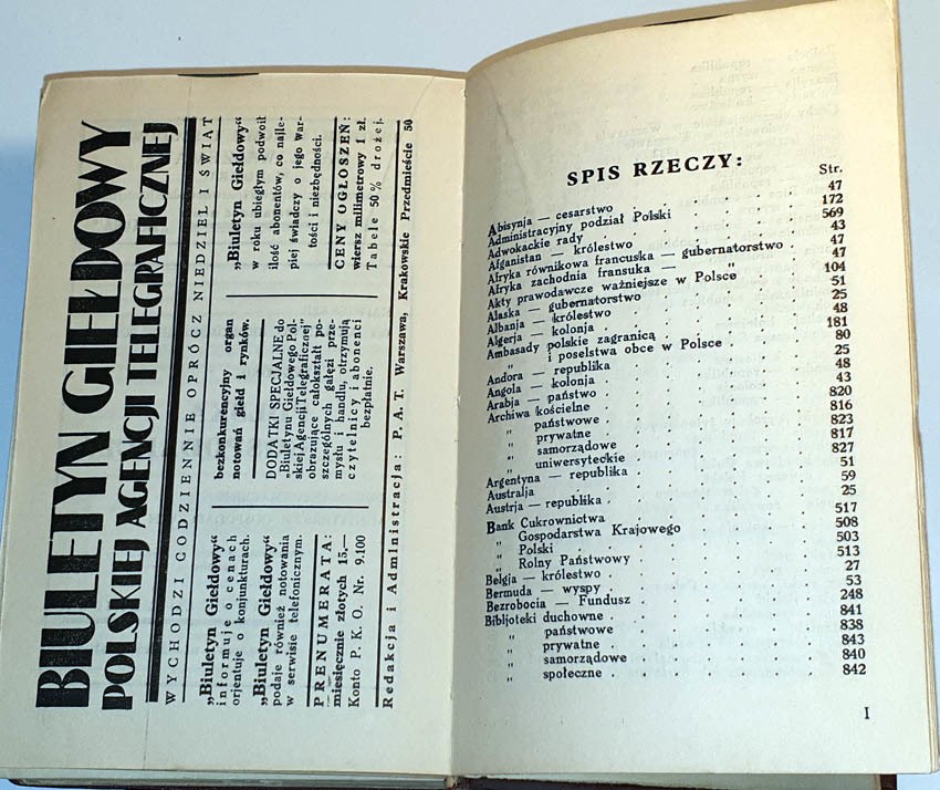 Warszawa 1933, Nakładem Polskiej Agencji Telegraficznej P.A.T., str. 947, (1), XII, (2); format 11,5x17cm