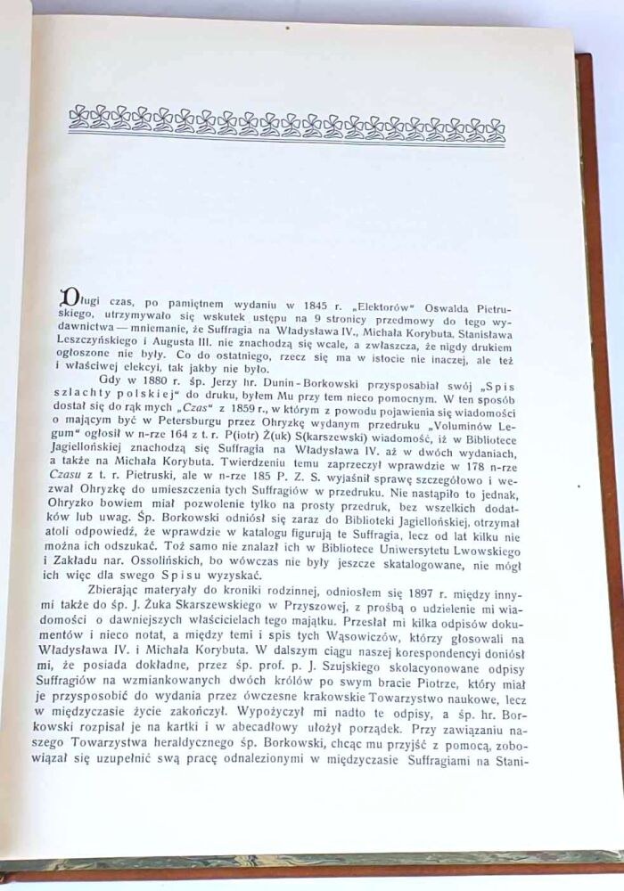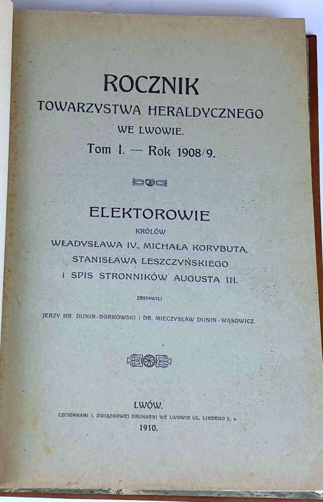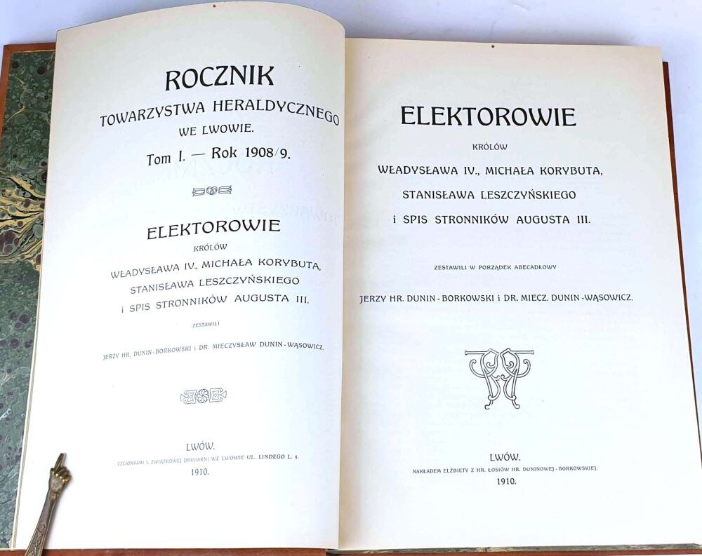 T. 1 - "Elektorowie królów Władysława IV, Michała Korybuta, Stanisława Leszczyńskiego i spis stronników Augusta III" w zestawieniu J. Dunina-Borkowskiego i M. Dunina-Wąsowicza