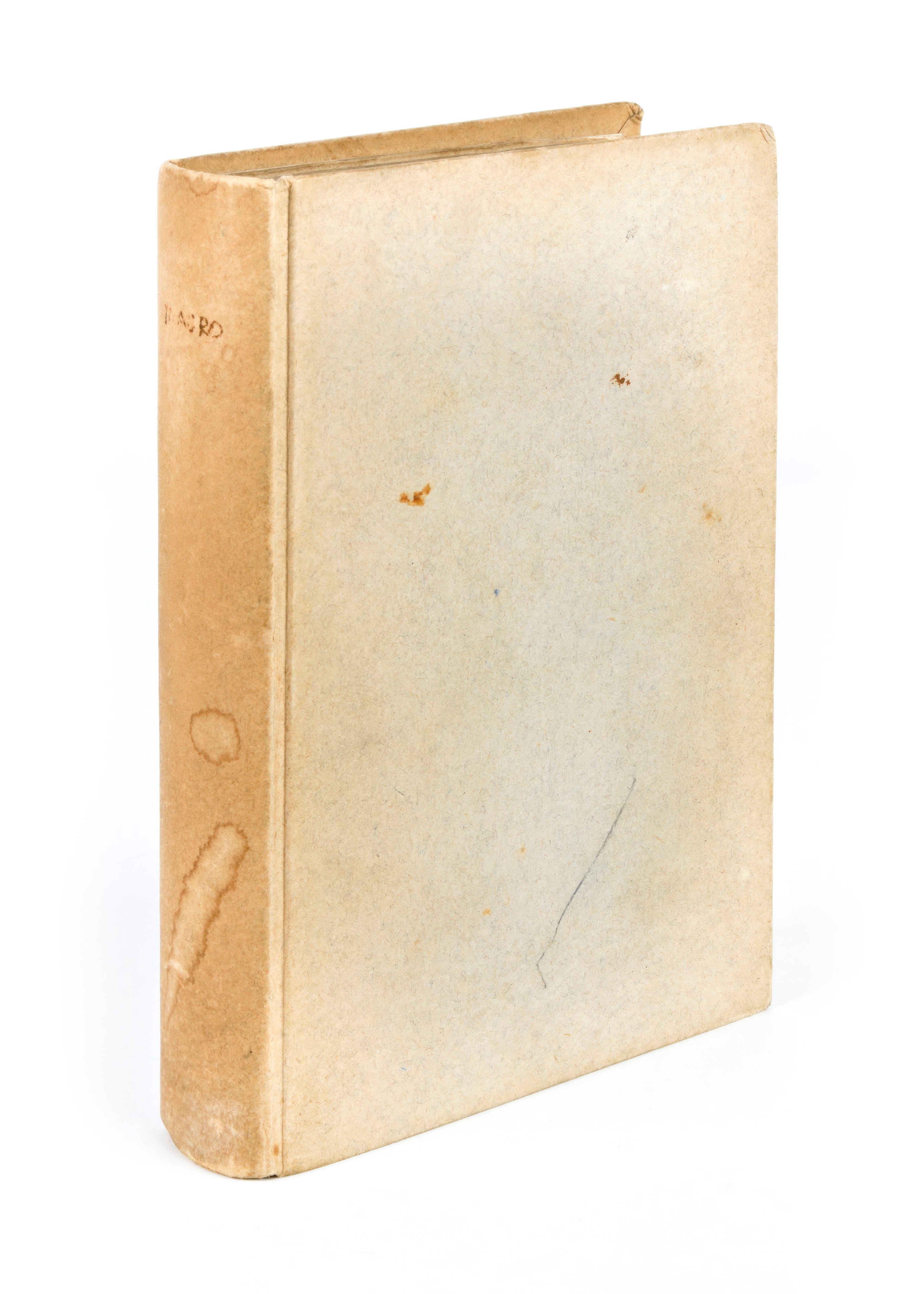 Formato in-8°, mm. 150x105, pp. (24), 315, (5). Copertina rigida post. (XX sec.), dorso con titolo sbiadito. Marca tipogr. in xilografia al front. (Stella cometa con sette stelle tra le punte. Intorno alla coda nastro con motto. In cornice figurata) a ripetersi nell'ultima carta. Capilettere in xilogr. n.t. Restauro al margine delle prime 9 carte e alle ultime 3. Lieve macchia di gora dalla carta A1 alla c. A8. Macchie di gora al dorso. Piccoli lavori di tarlo marginali, senza perdita di testo. Al risguardo anteriore applicata una etichetta di Rappaport. Titolo manoscritto al taglio inferiore (sbiadito).