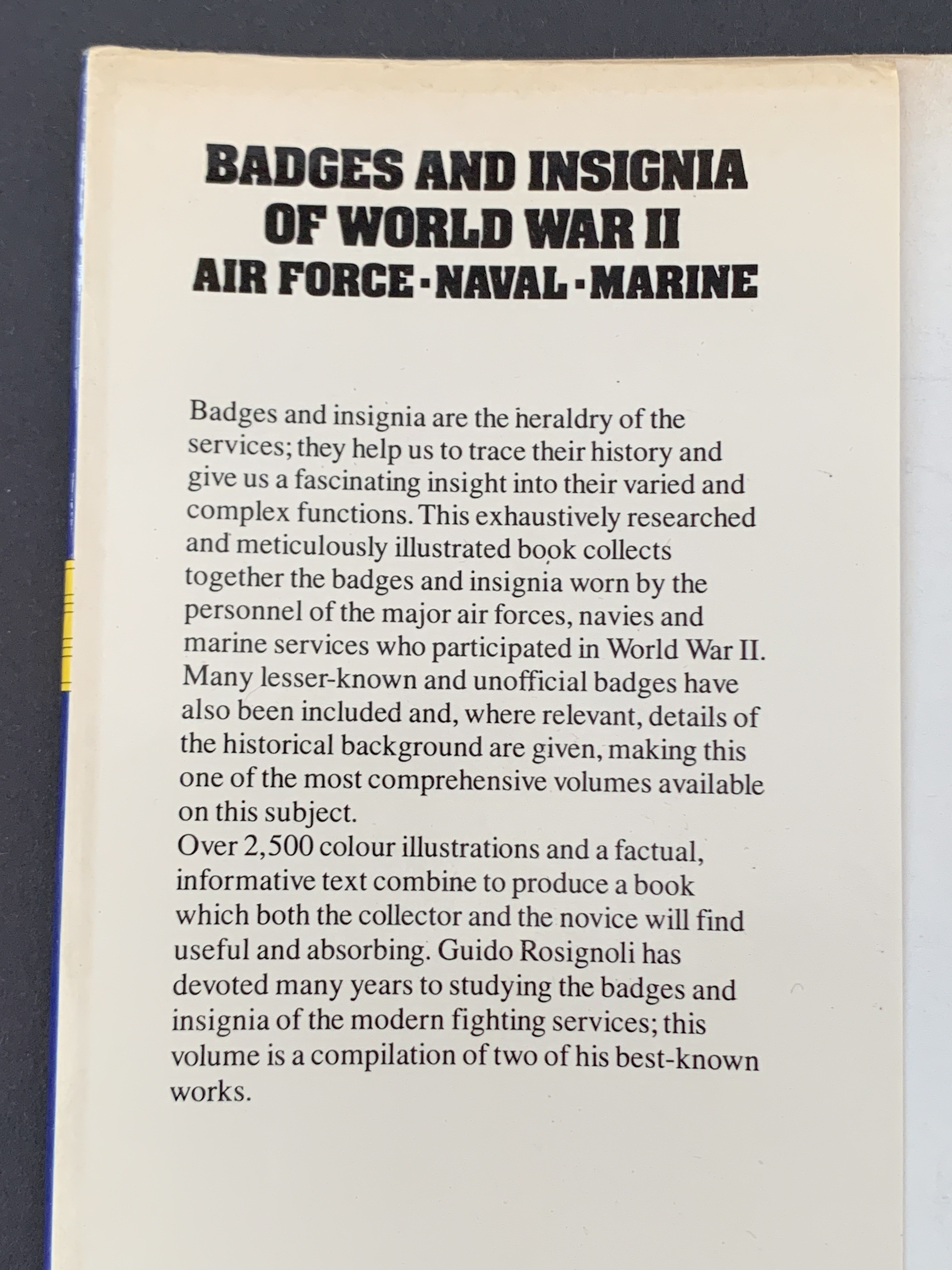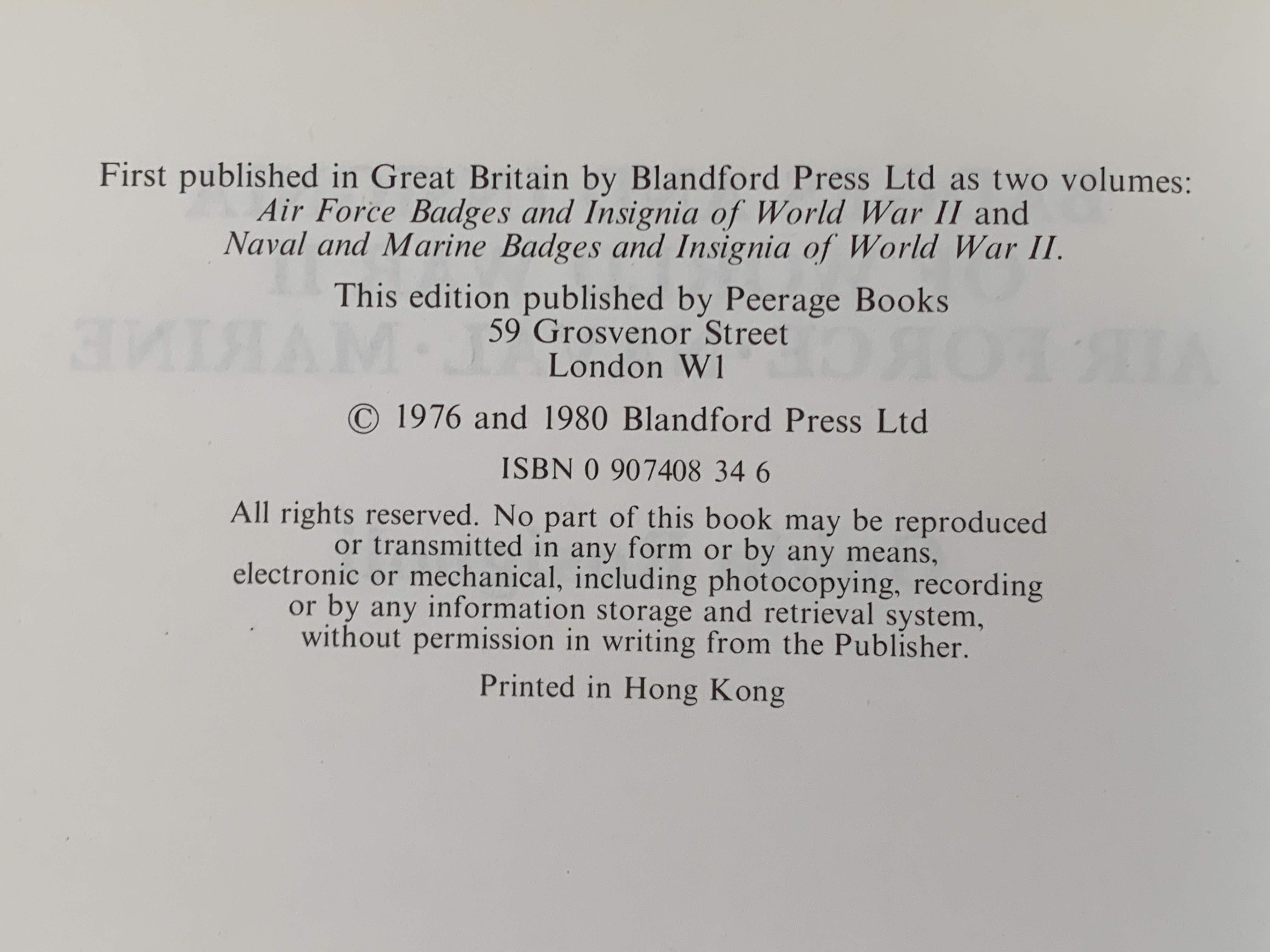 ROSIGNOLI Guido - BADGES AND INSIGNIA OF WORLD WAR II: Air Force, Naval, Marine. London 1980. Peerage Books.