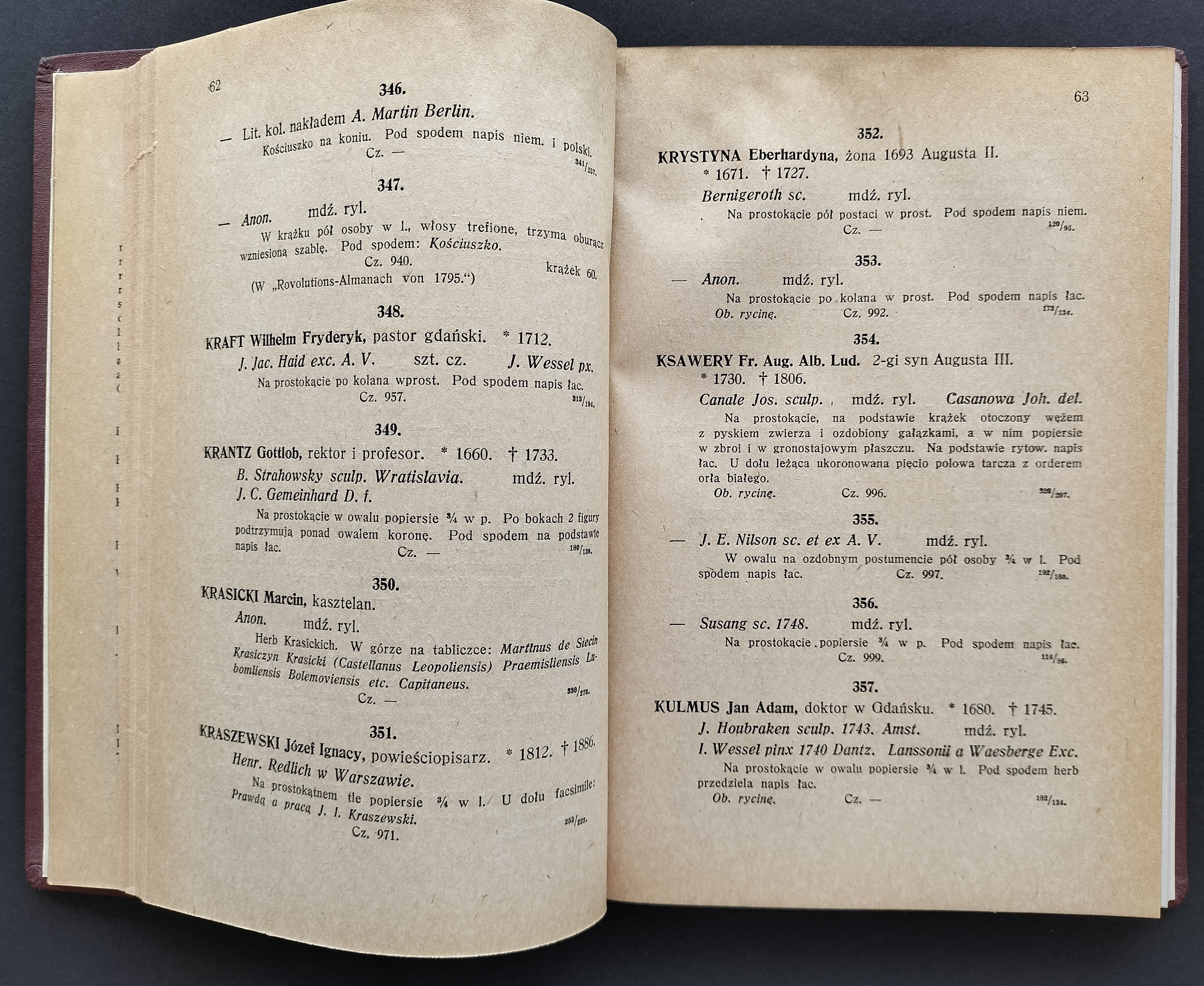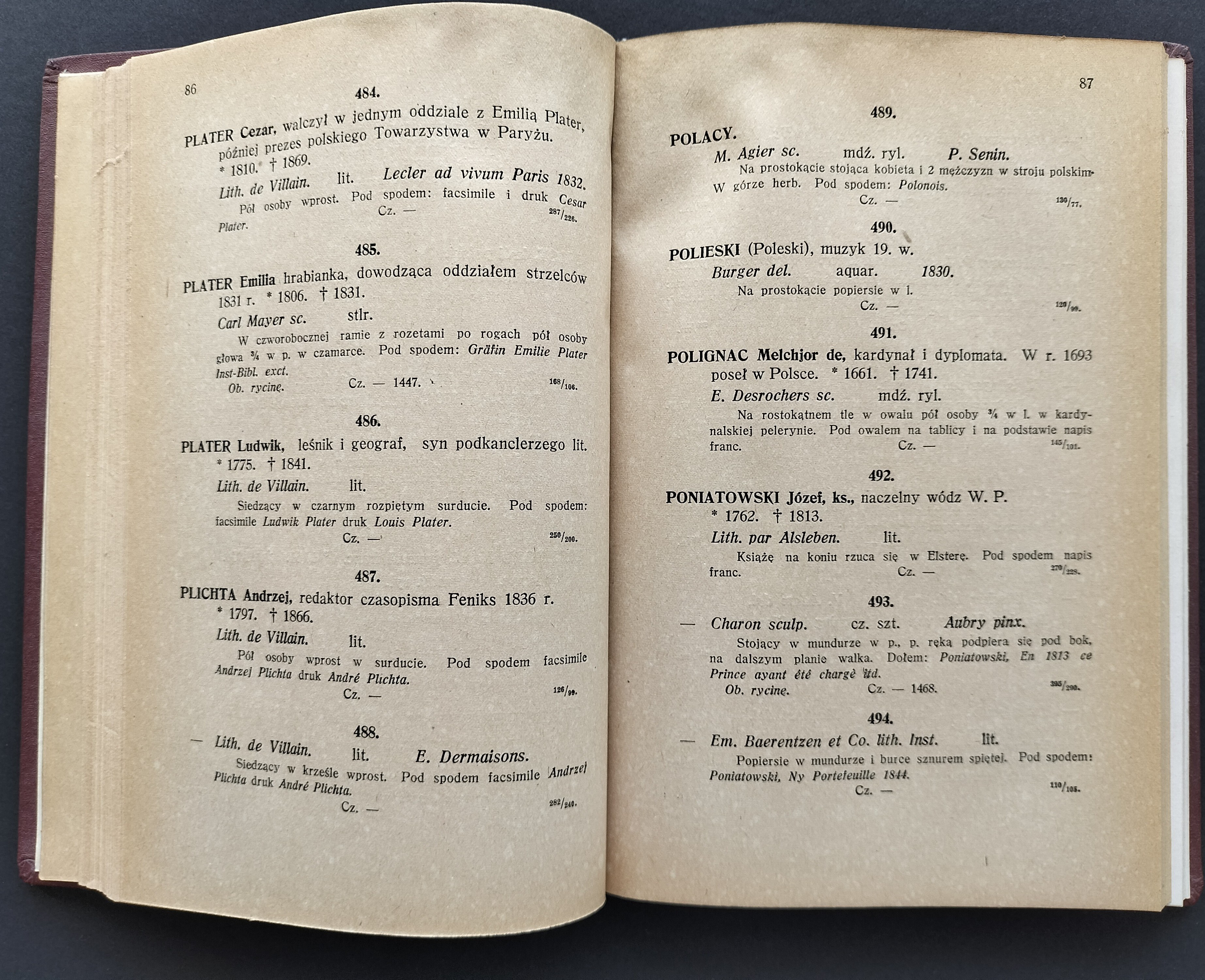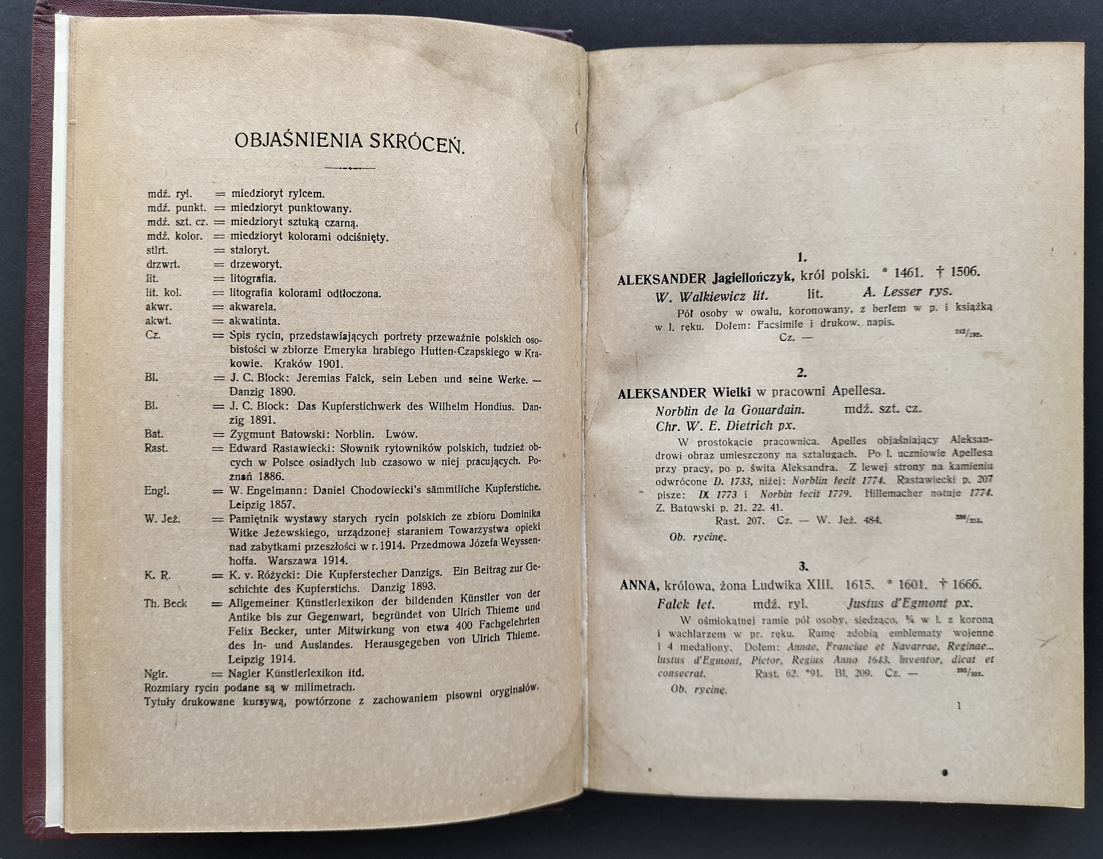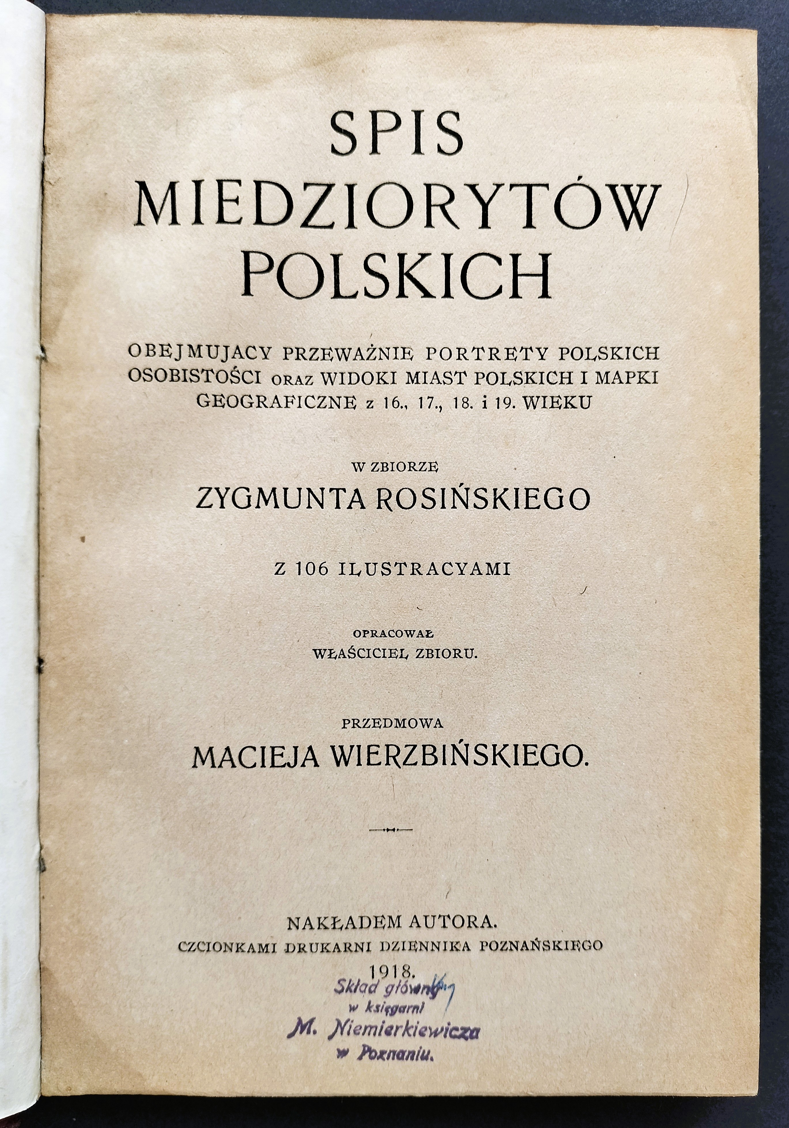 ROSIŃSKI Zygmunt - Spis miedziorytów polskich obejmujący przeważnie portrety polskich osobistości oraz widoki miast polskich i mapki geograficzne z 16., 17., 18. i 19. wieku w zbiorze ... Z 106 ilustr. Oprac. właściciel zbioru. Przedmowa Macieja Wierzbińskiego. Poznań 1918. Nakł. autora.