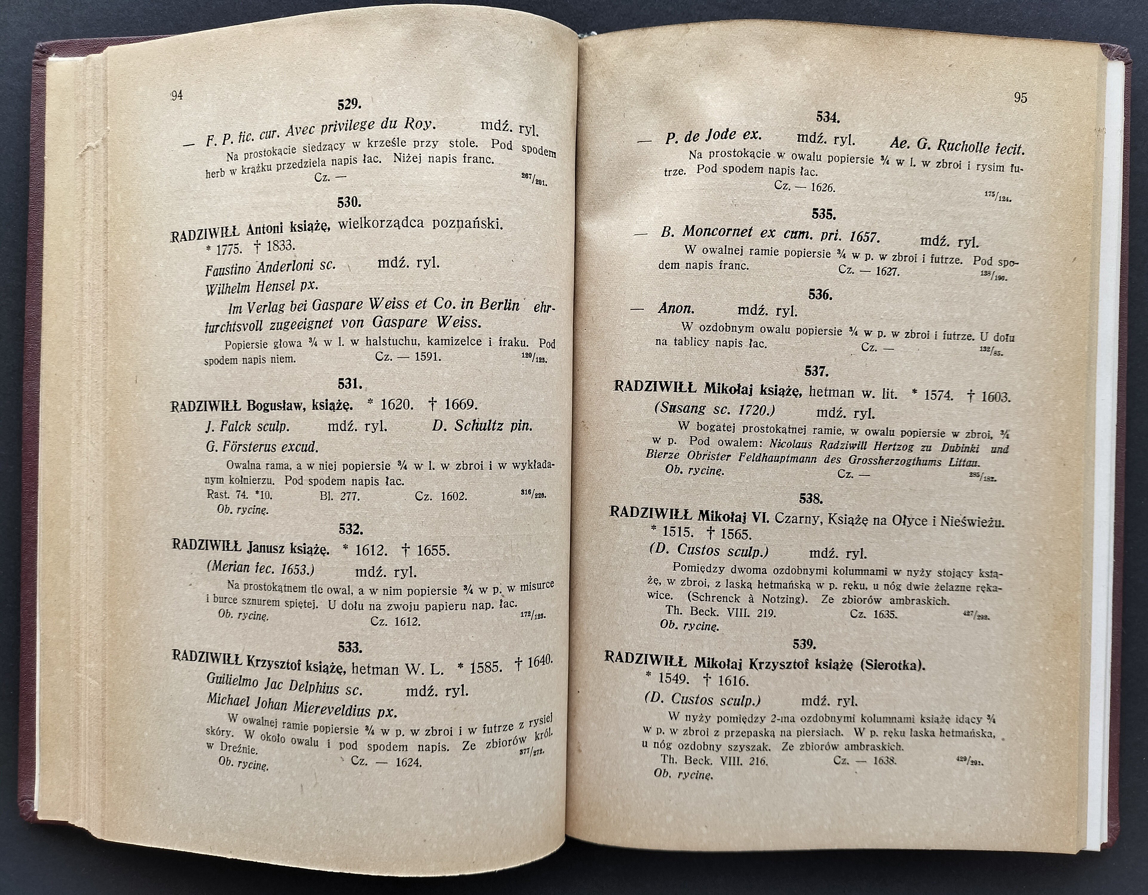 Z przedmowy: "Niewątpliwie dawne sztychy posiadają dla nas szczególniejsze znaczenie, dają nam bowiem wiele więcej, aniżeli ówczesne, rzemieślnicze malarstwo. Pamiętajmy, że sztuka sztycharska w miedzi sięga w Polsce początków XVI wieku, czasów Wita Stwosza, i zawdzięczamy jej wizerunki autentyczne osobistości znanych w historji. „Na tych portretach -pisze słynny zbieracz, Emeryk hr. Czapski, który pozostawił kolekcję i spis sztychowanych portretów polskich - widzimy często oznaki urzędów, o których się dotąd nie wiedziało, dowiadujemy się o małżeństwach, o których zresztą nikt nie wspomina, bo trwały krótko, o genealogiach i t. d. Wtedy, kiedy na rynku kupiony, olejno malowany portret po dodaniu orderu lub herbu nieraz uchodzi nadal za wizerunek czasem nieistniejącego protoplasty, sztych nie bywa fałszowany, bo zjawia się za życia przedstawionej osoby, któej urzędy i tytuły wszystkim są znane, dlatego też dla historycznych i genealogicznych badań tem cenniejszy przedstawia materjał". Skatalogowane poniżej odciski miedziorytów, stalorytów, akwatintów, mezzotintów i litografji oraz oryginalne rysunki ołówkowe i węglowe, wreszcie akwarele -wszystko to z wieków XVI, XVII, XVIII i XIX pochodzą ze zbiorów pana Zygmunta Rosińskiego. Zapalony zbieracz nie dał się ponieść swej pasji na rozbieżne tory, lecz wytknął sobie cel ścisły, zamykający się w określeniu: Polonica i w ciągu zaledwie lat sześciu osiągnął zdumiewający rezultat: zgromadził około tysiąca kartonów albo treścią odnoszących się do dziejów Polski, albo z pod rylca polskich sztycharzy pochodzących, a w tem mnogo prac niepospolitej wartości, nawet białych kruków.
