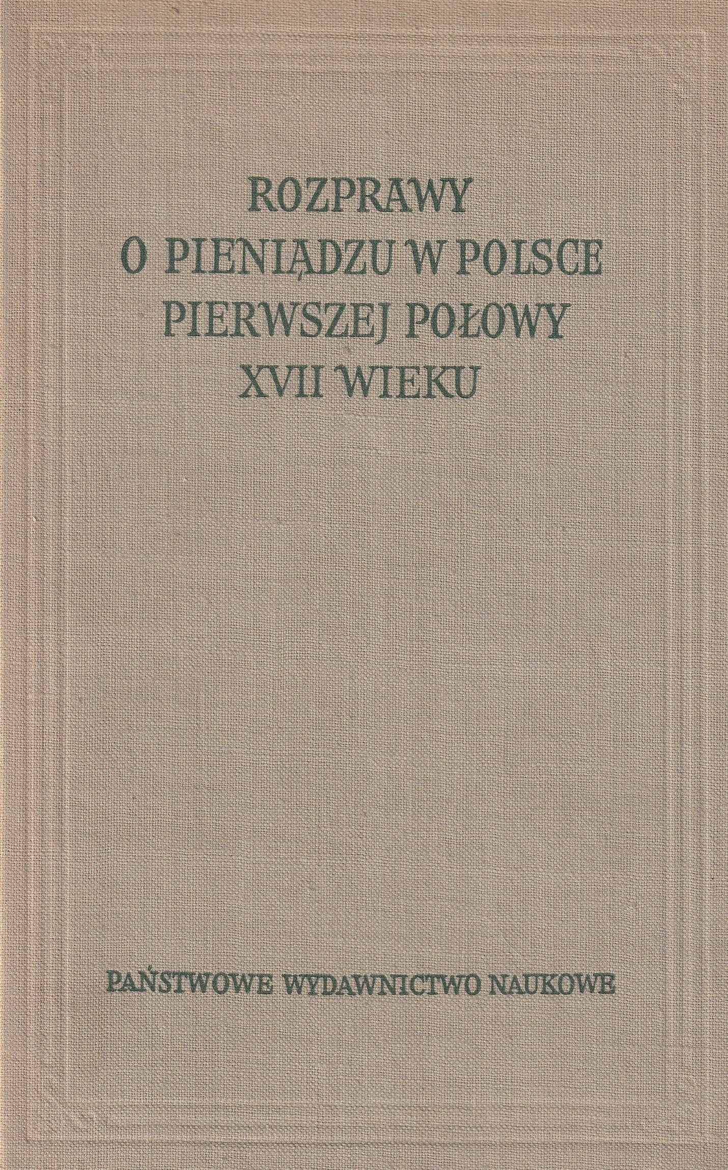 ROZPRAWY o pieniądzu w Polsce pierwszej połowy XVII wieku, wyb. Z. Sadowski, wyd. PWN, Warszawa 1959, str. 440; oprawa twarda, nieaktualna pieczątka, st. bdb.; wym. ok. 130x200 mm.