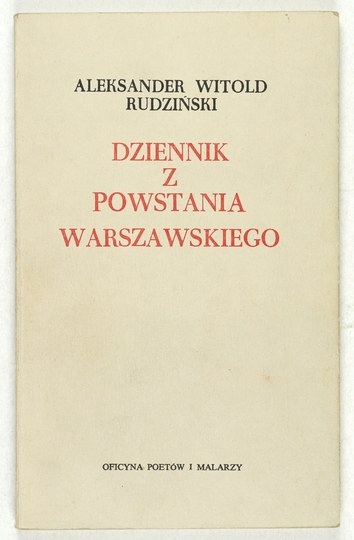 RUDZIŃSKI Aleksander Witold - Dziennik z powstania warszawskiego. Londyn 1974. Oficyna Poetów i Malarzy. 8, s. 104. opr. oryg. miękka kart.