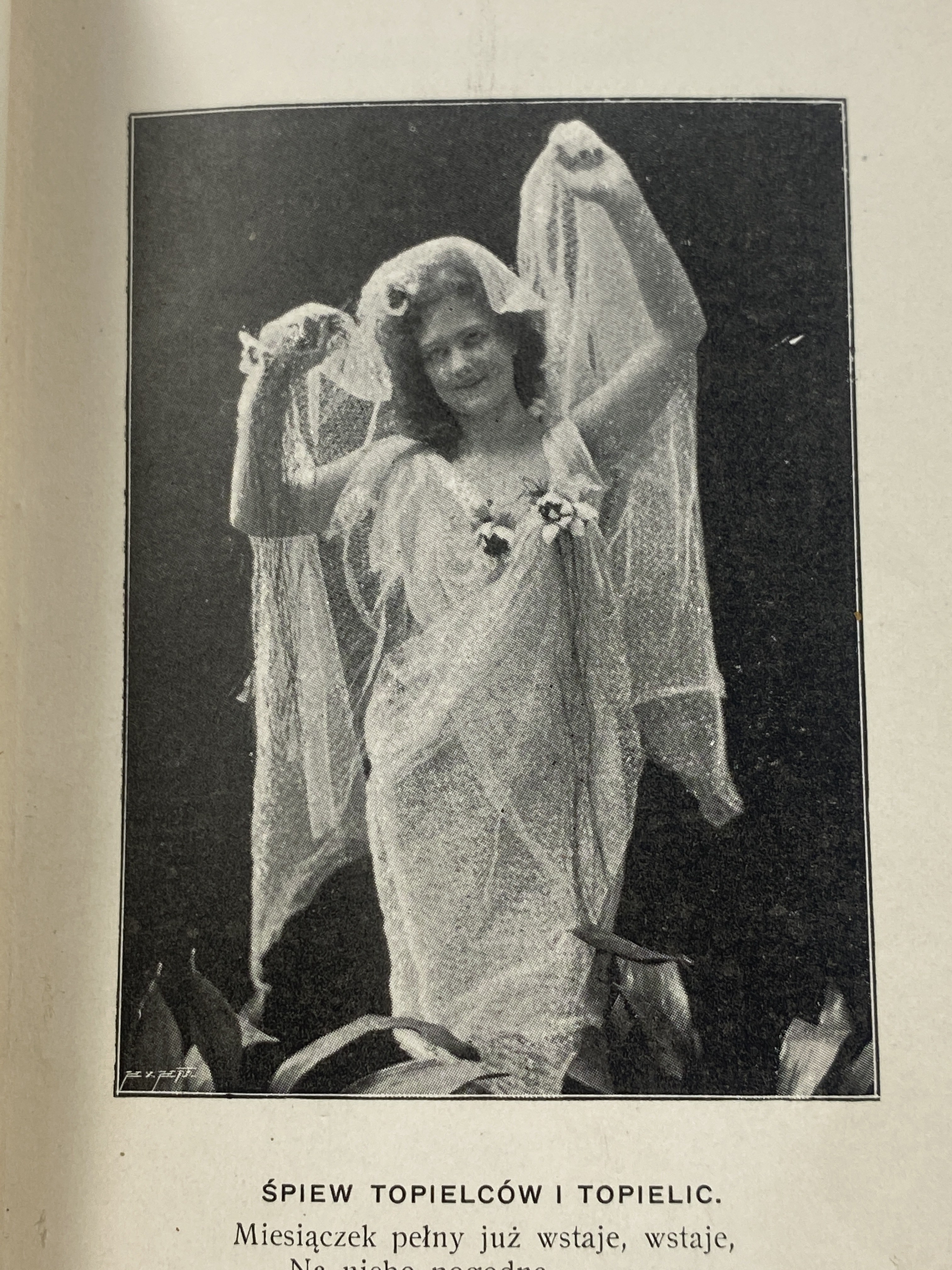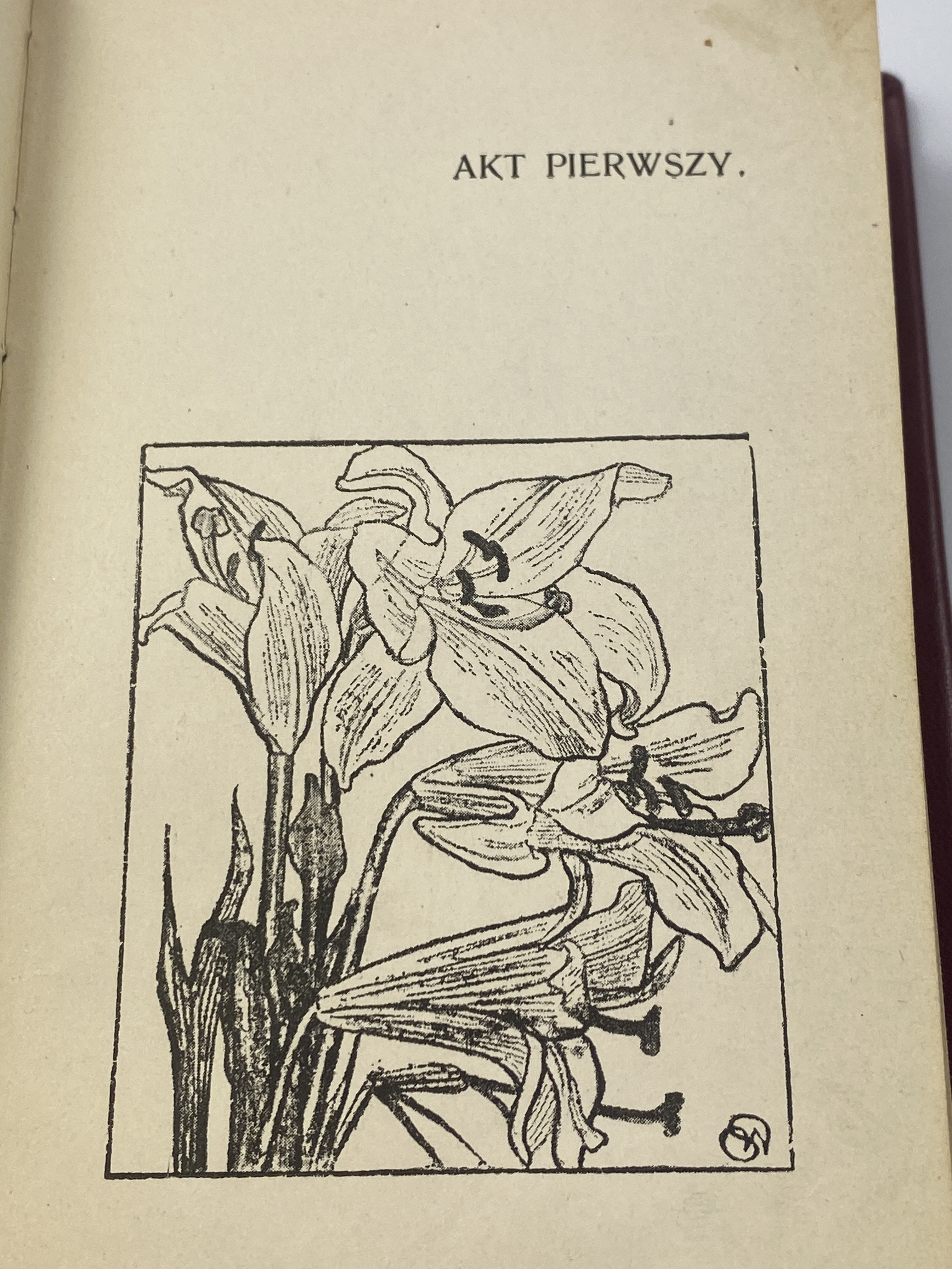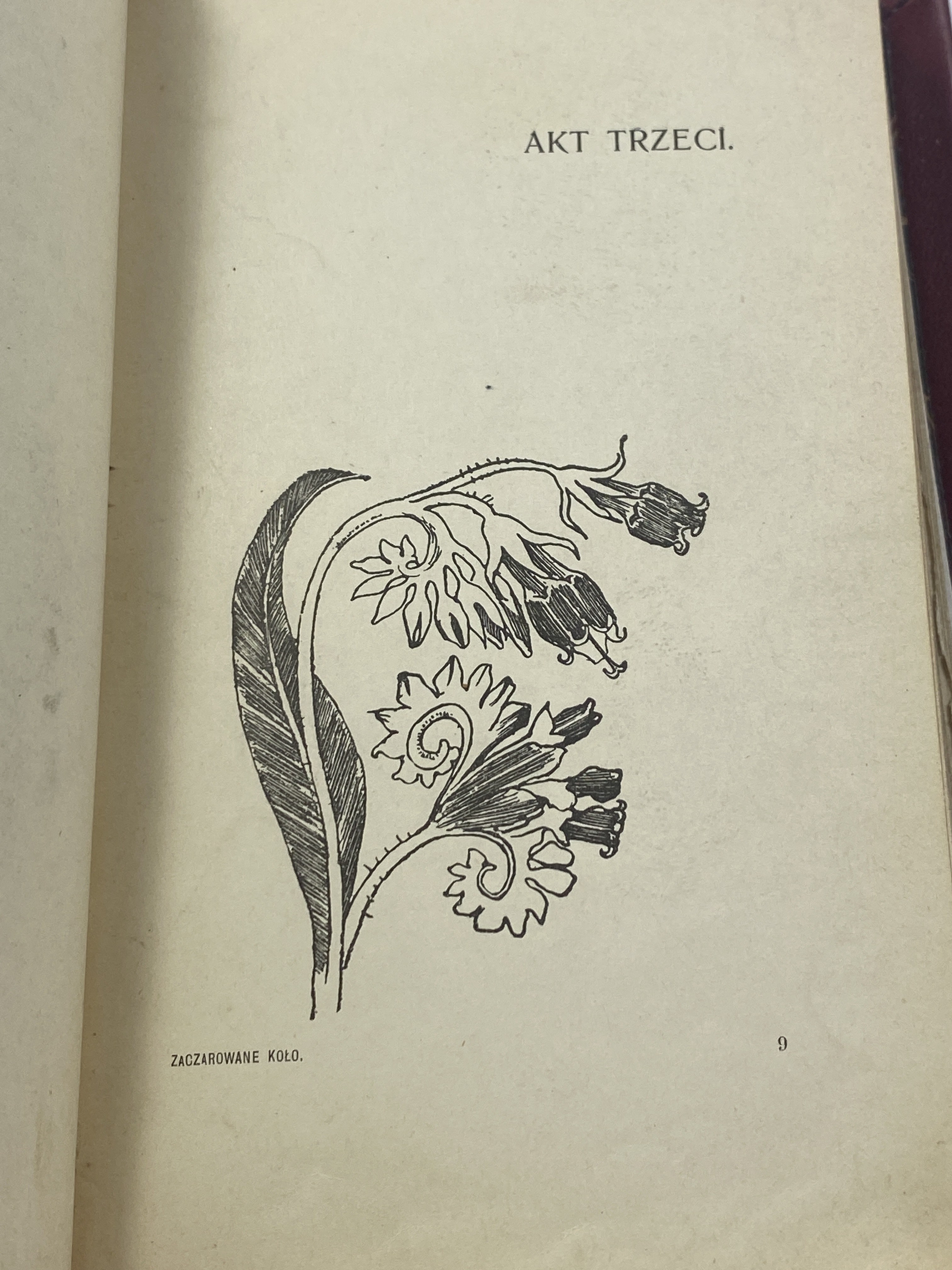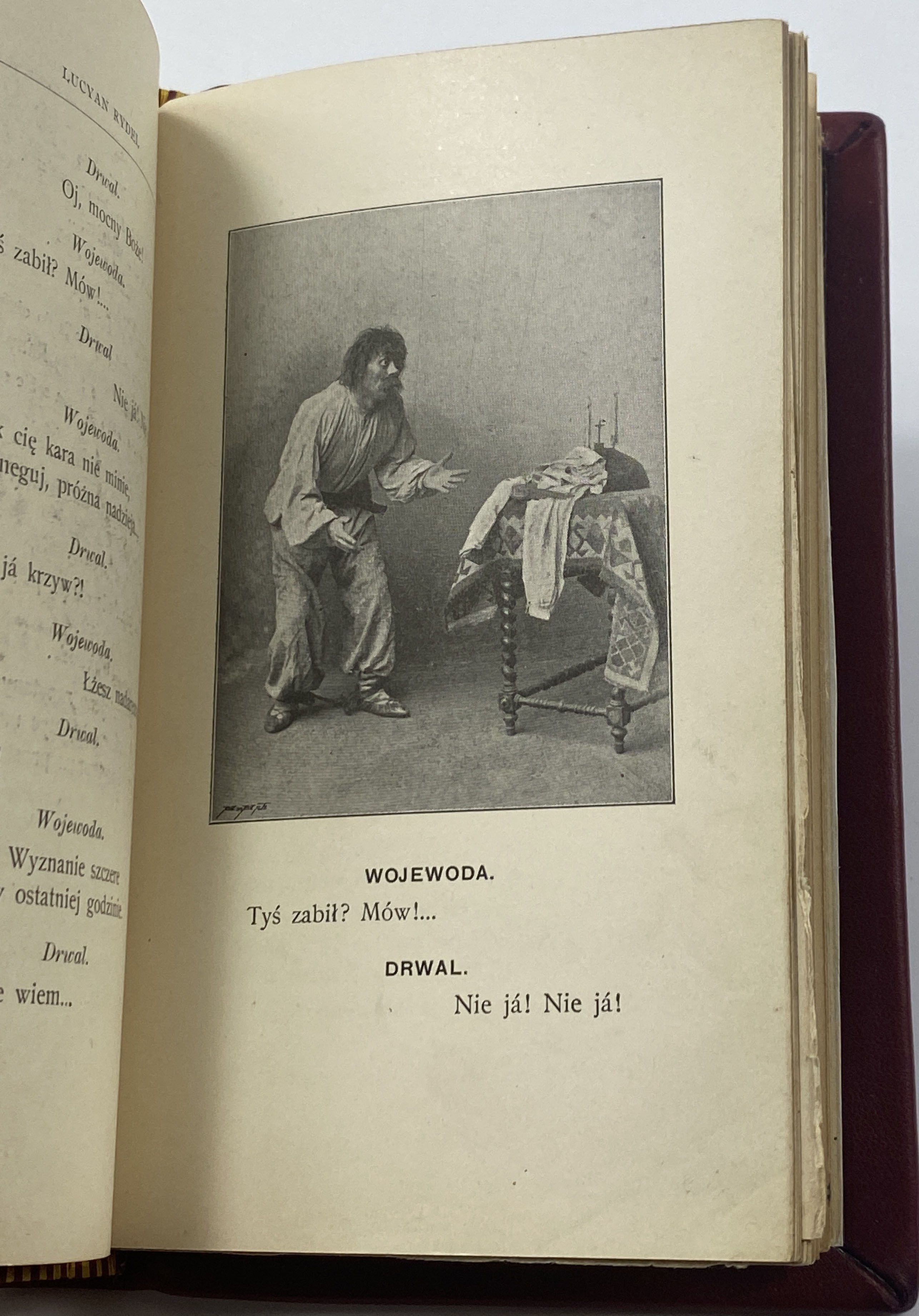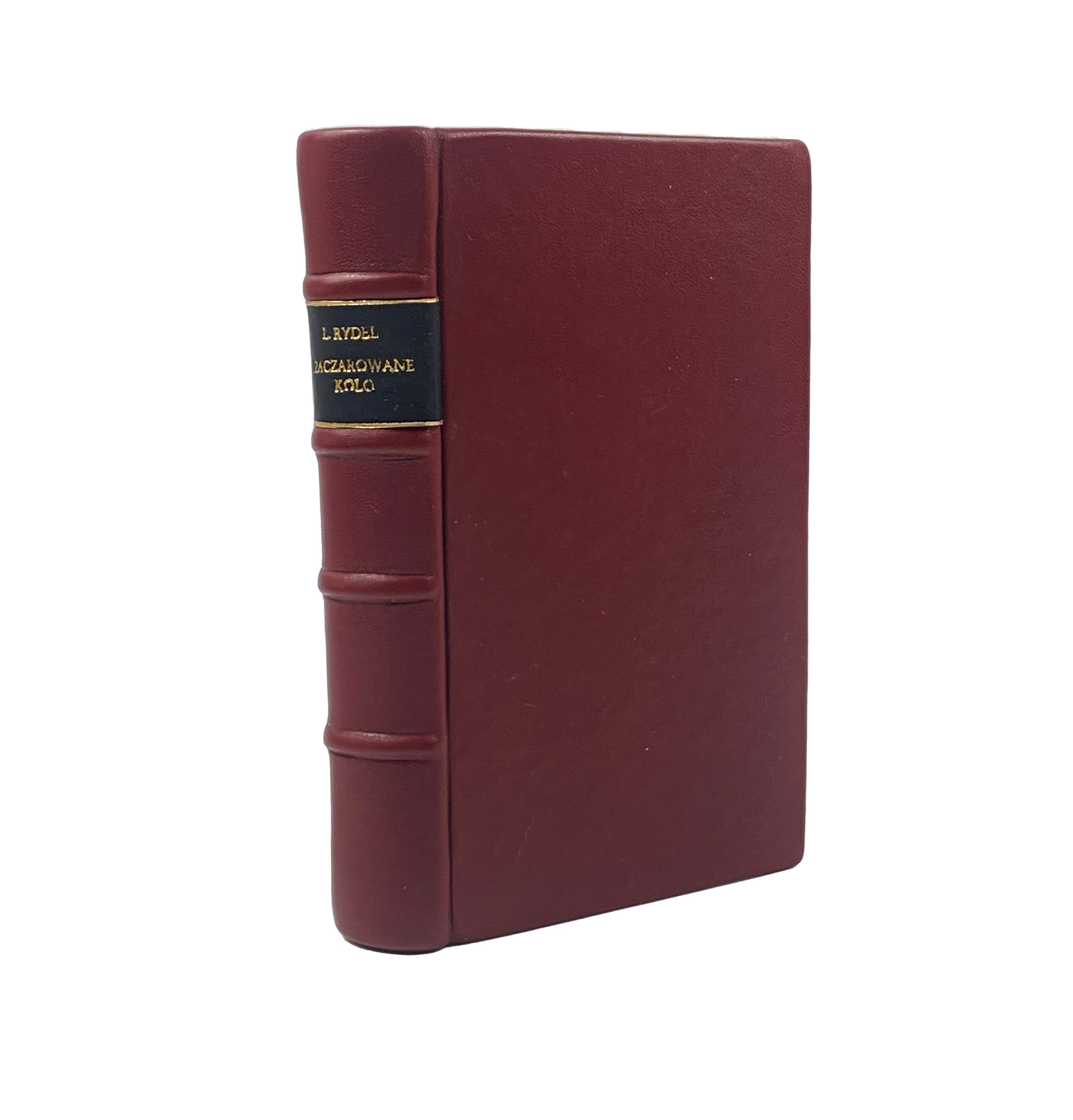 Rydel Lucjan, Zaczarowane koło: baśń dramatyczna w 5 aktach, Kraków: nakładem Księgarni D. E. Friedleina; Warszawa: E. Wende i Ska, 1902, s. 293 strony, [13] kart tablic: ilustracje, wymiary 10 x 16,5 cm. Zabrudzenia w środku. Oprawa skórzana wykonana ręcznie w pracowni Suszek Books.