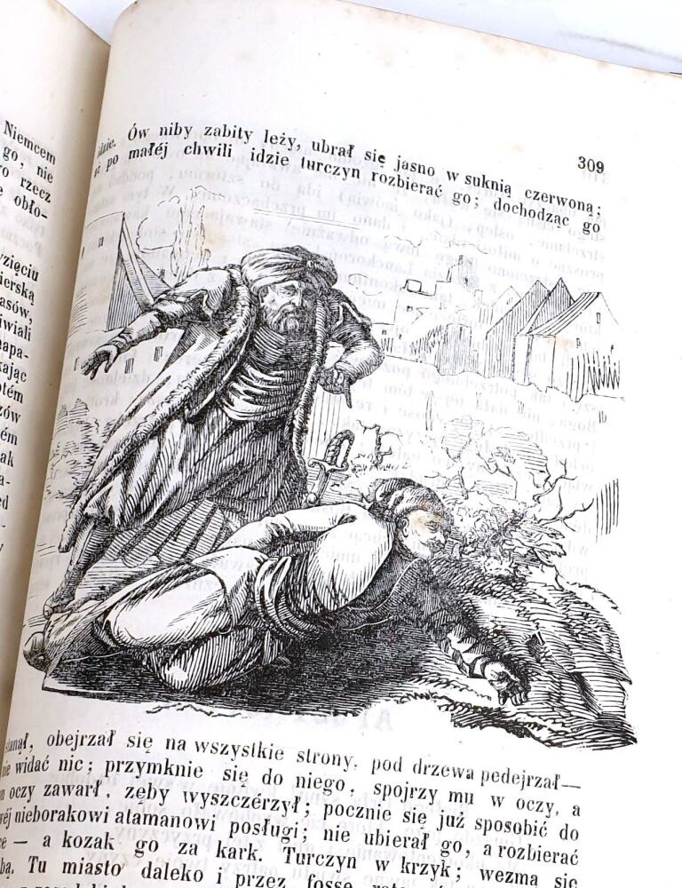 Oferowany egzemplarz stanowi poszyt 5 zeszytów z serii Biblioteki Lwowskiej, czyli całosć dzieła w wersji ilustrowanej drzeworytami.