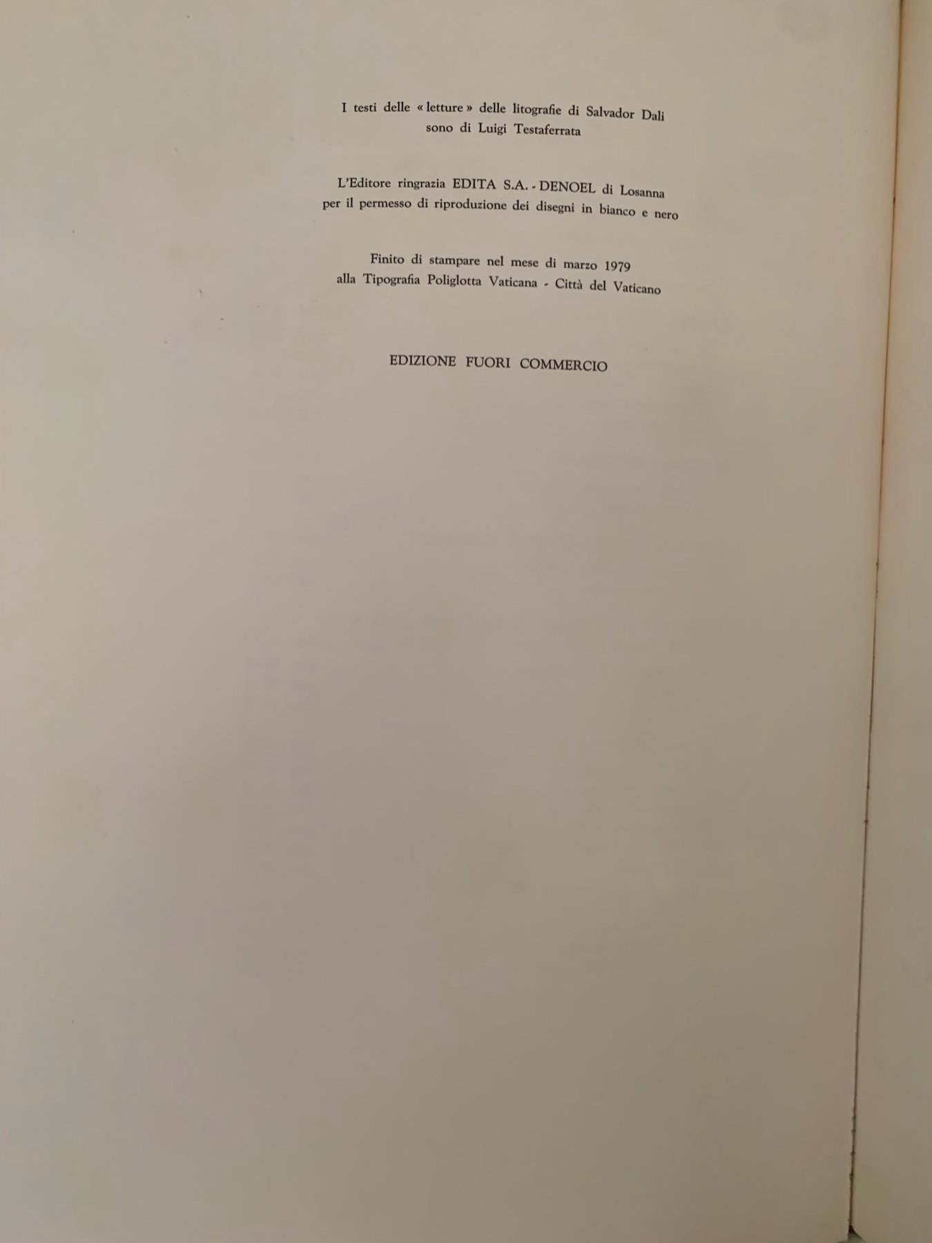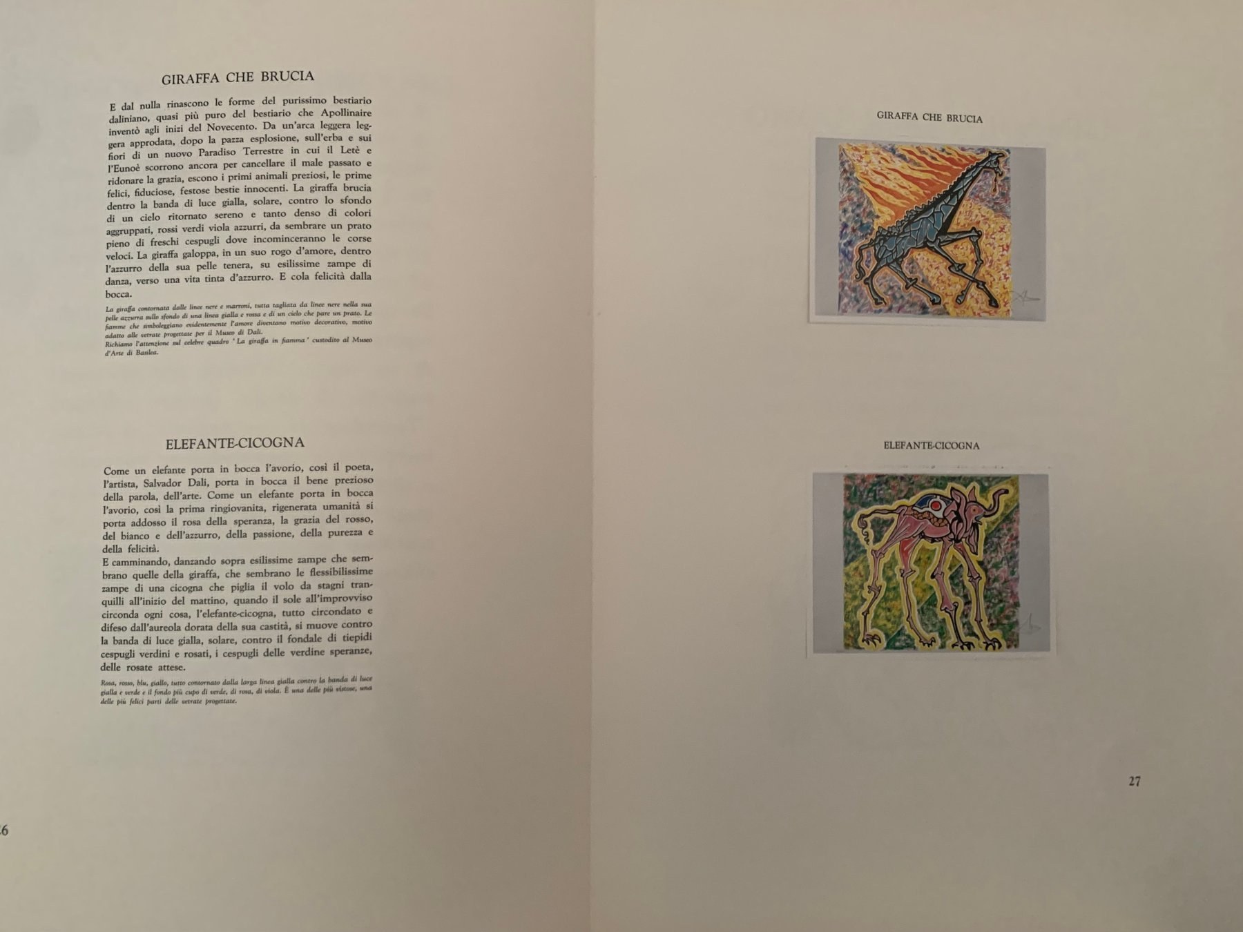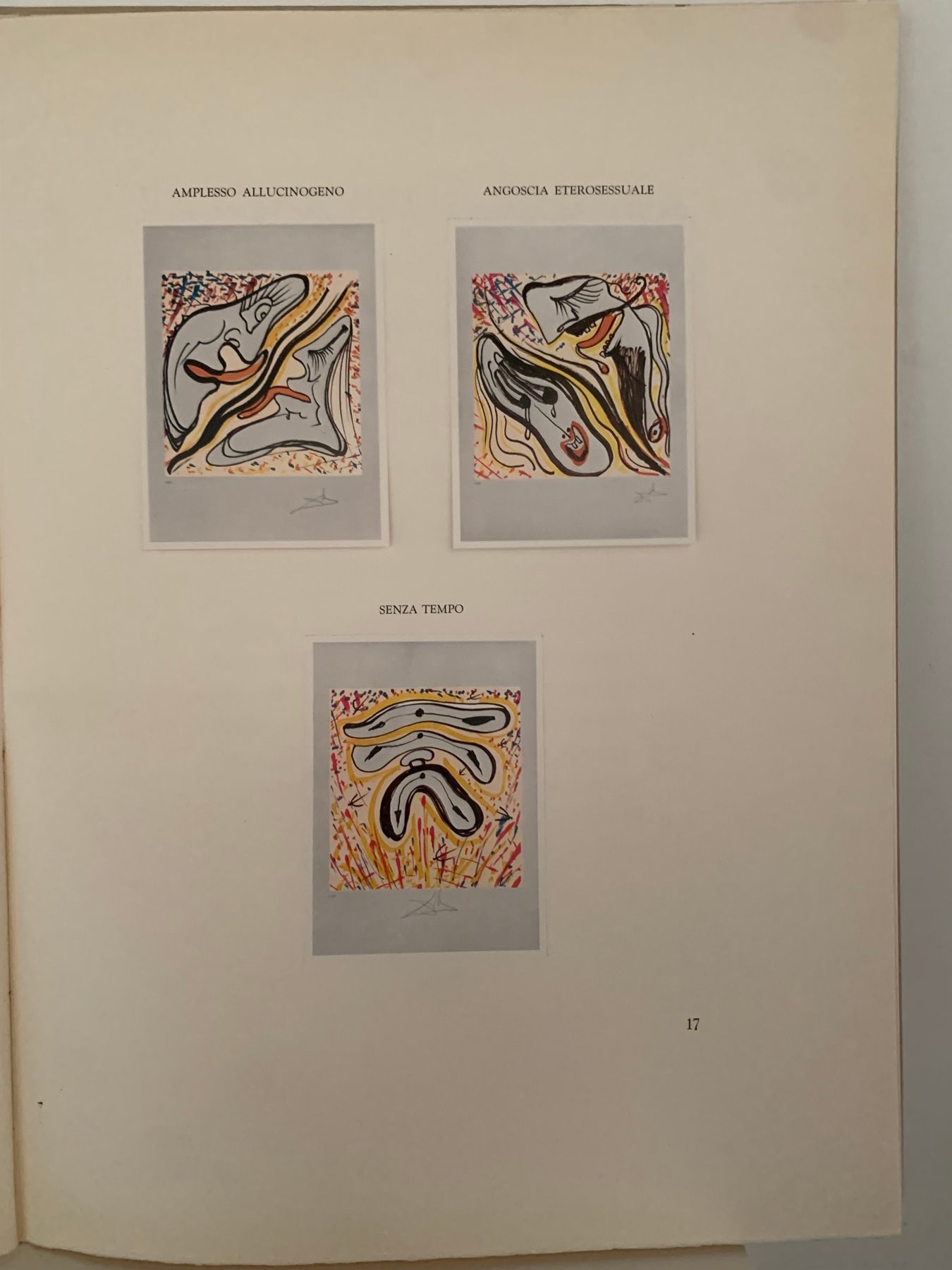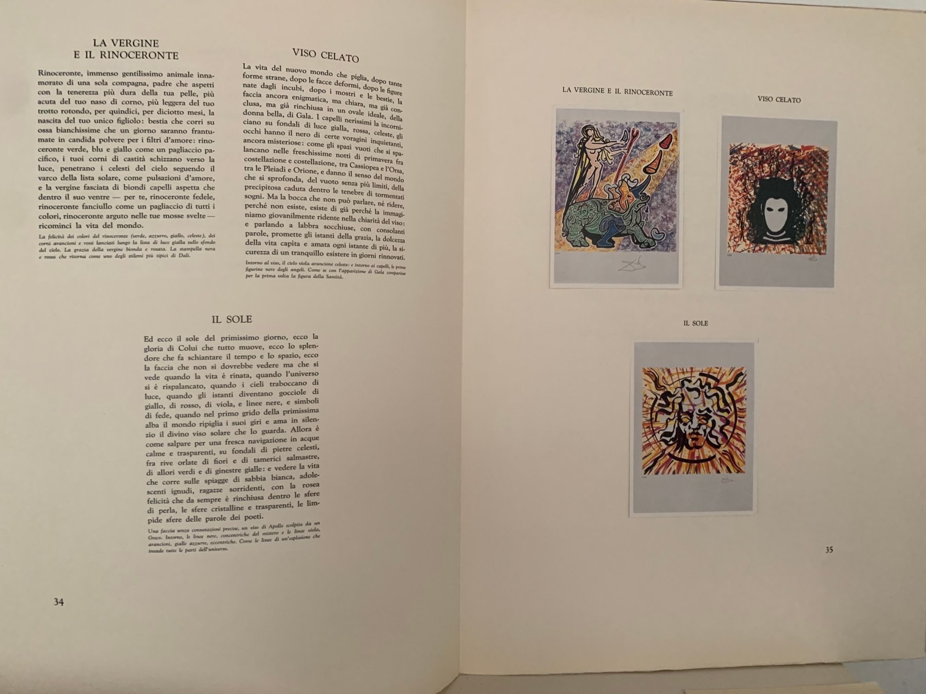 - ozdobne wyklejki z rysunkami Dalego; stron 45; każda kompozycja zatytułowana, jako oddzielny temat surrealizmu oraz szeroko opisana; Tekst – 7 rozdziałów oraz 24 opisy kompozycji – napisał Luigi Testaferrata;