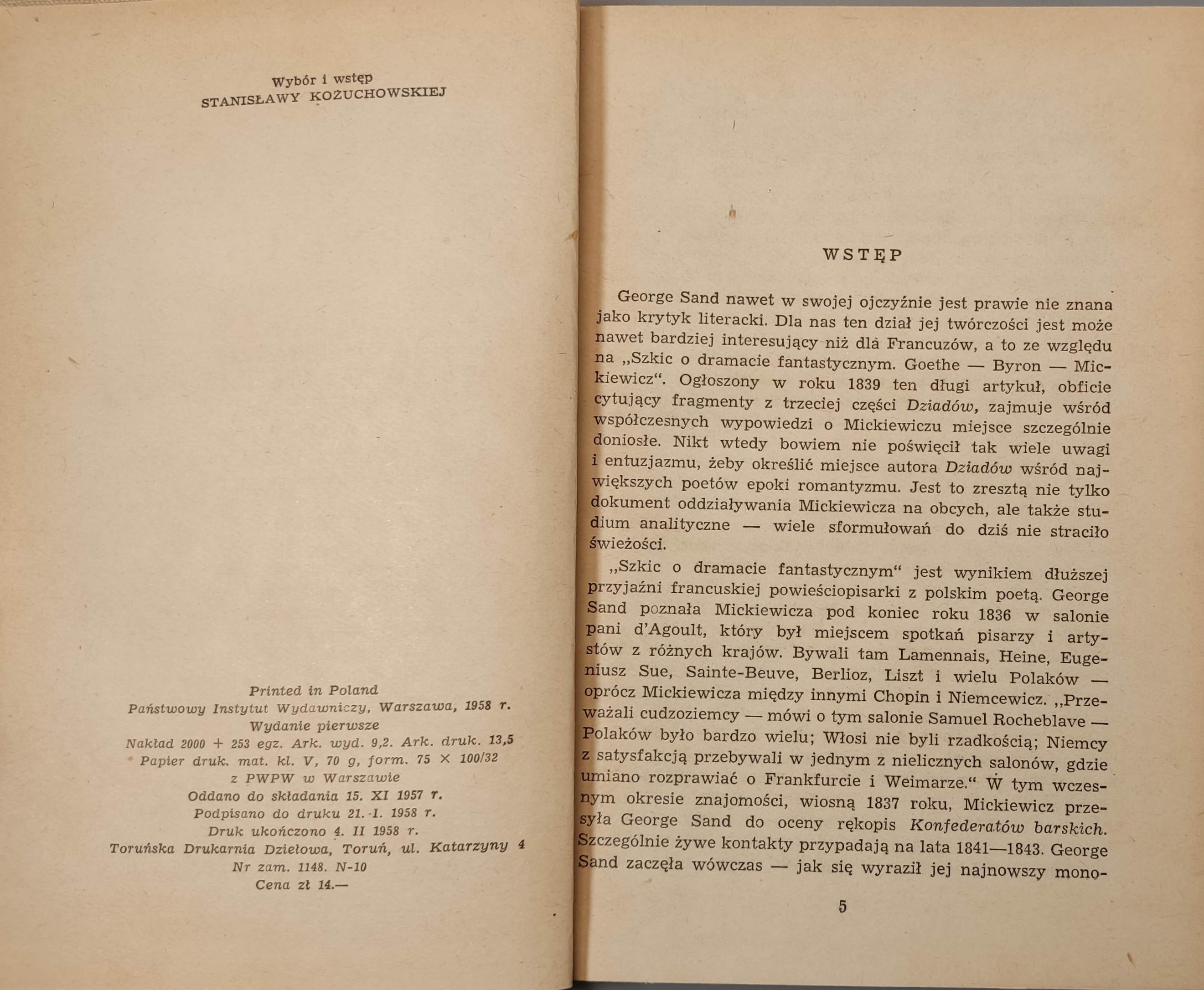 SAND George - ESEJE (Oberman, Szkic o dramacie fantastycznym, Dialogi o poezji proletariuszy, Honoriusz De Balzac, Realizm, Szkoła uczuć, Listy do Flauberta)