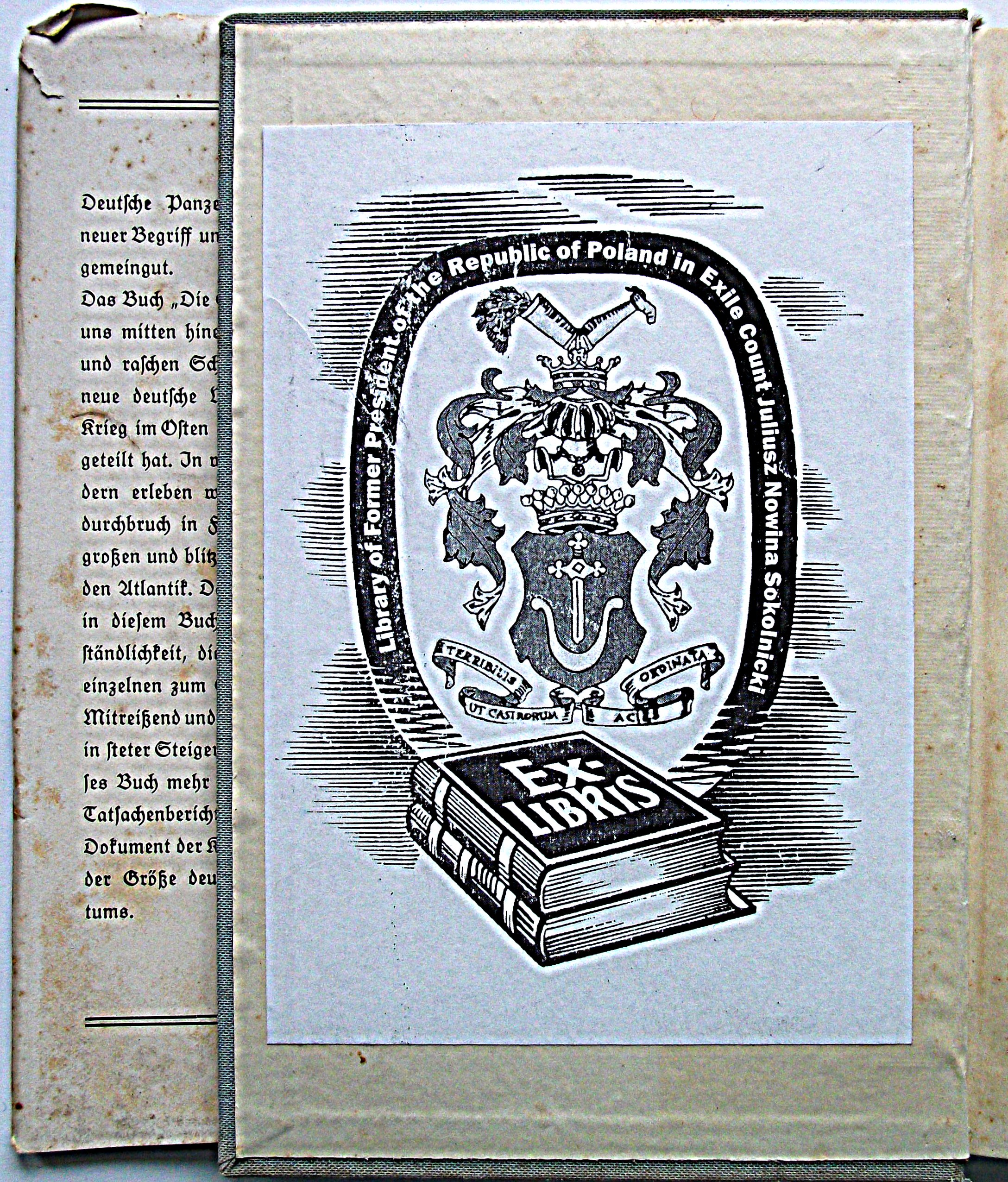 SCHEU JUST. Die Stunde X. Mit Panzern in Polen und Flandern. Berlin 1941. Verlag „Die Wermacht”. Druck Grosdruckerei Oskar Leiner, Leipzig. Format 12/18 cm. s. 250, [3] k. Opr. wyd. płtn. Zachowana (z ubytkami) barwna obwoluta z sceną batalistyczną - niemieckie czołgi rozjeżdżające polską kawalerię. (ZR)