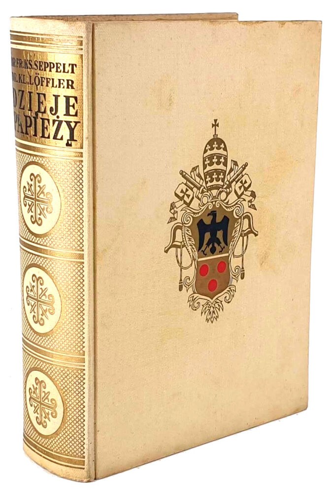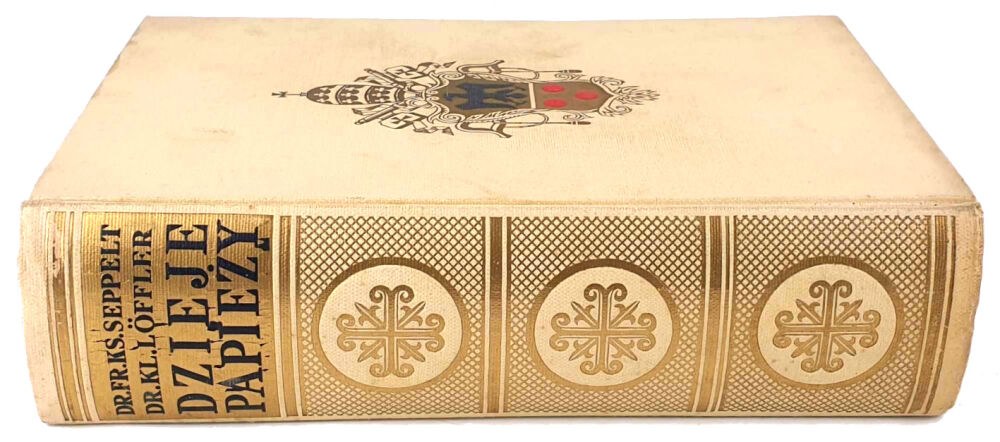 TWARDA OPRAWA WYDAWNICZA PŁÓCIENNA OZDOBNA Z EPOKI,EFEKTOWNY GRZBIET ZE ZŁOCONYMI NAPISAMI, KRATKĄ ORAZ TRZEMA KRZYŻAMI, NA PRZEDNIM LICU HERB PIUSA XI. ZACHOWANA ORYGINALNA OBWOLUTA [DUŻA RZADKOŚĆ!]