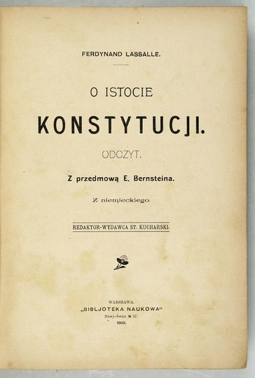 LASALLE Ferdynand - O istocie konstytucji. Odczyt. Z przedmową E. Bernsteina. [Tłumaczenie] z niemieckiego. 8, s. 77